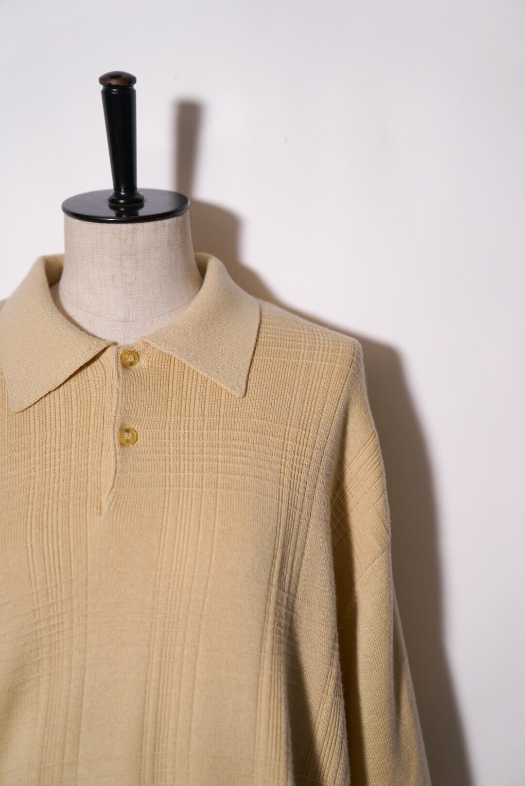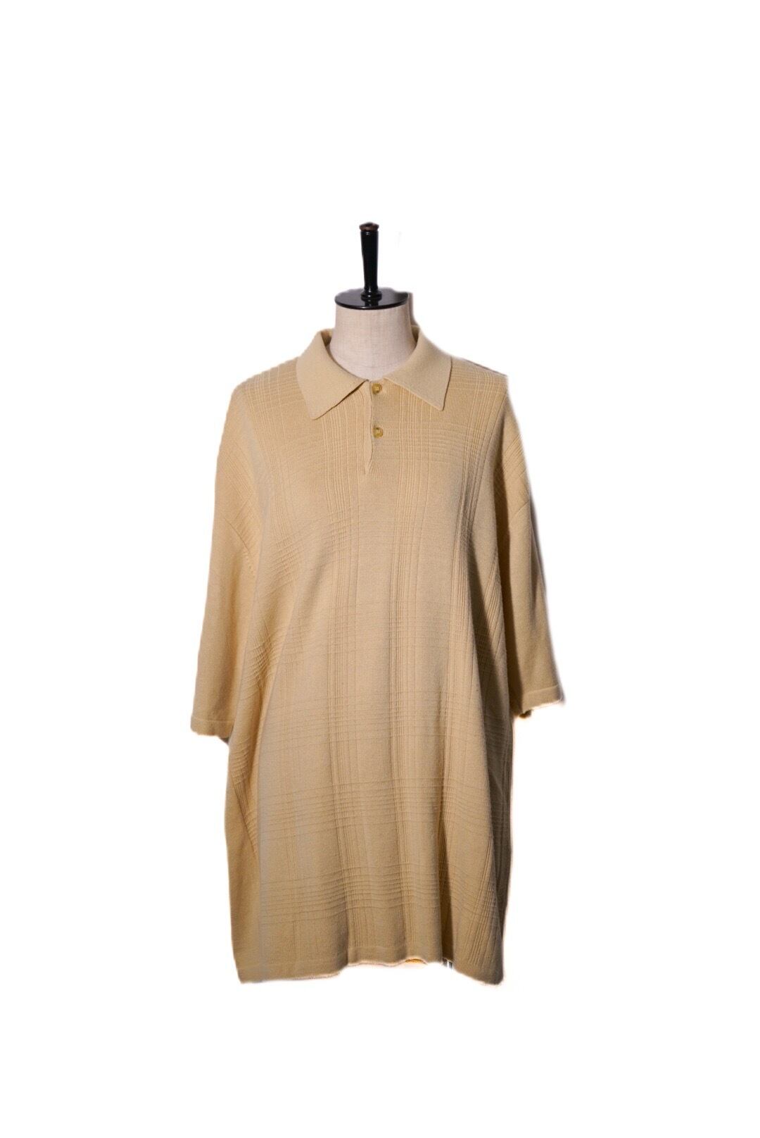 温かみのあるイエローのショートスリーブニットポロシャツ。