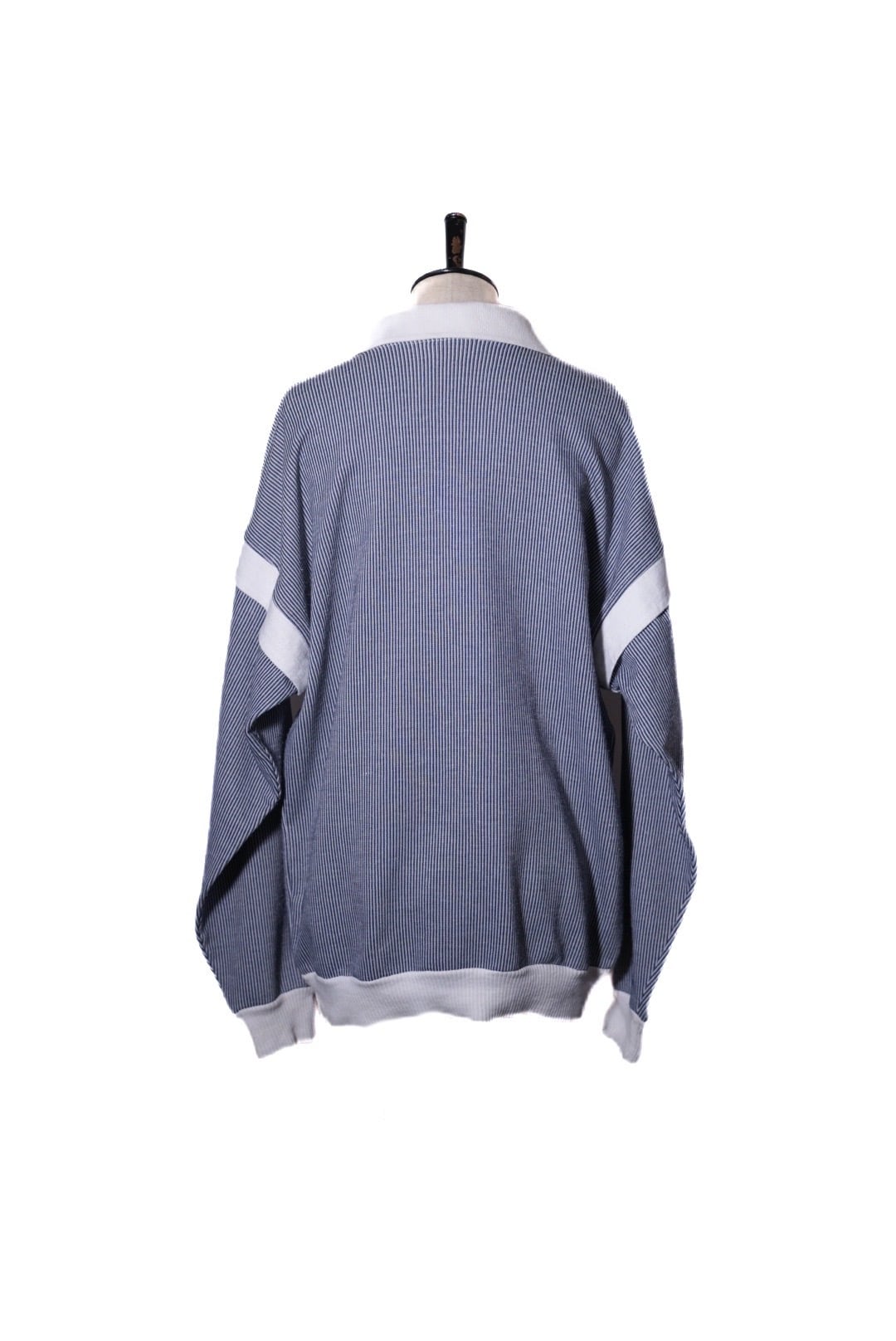 ストライプをベースに肩、胸、袖にかけて白生地が足されている古着らしいデザイン性の高い1着。