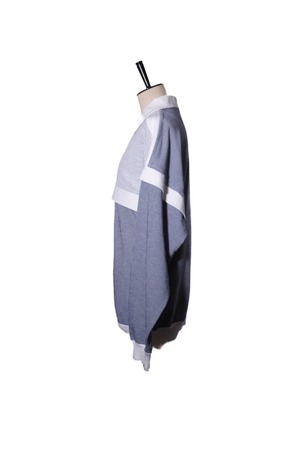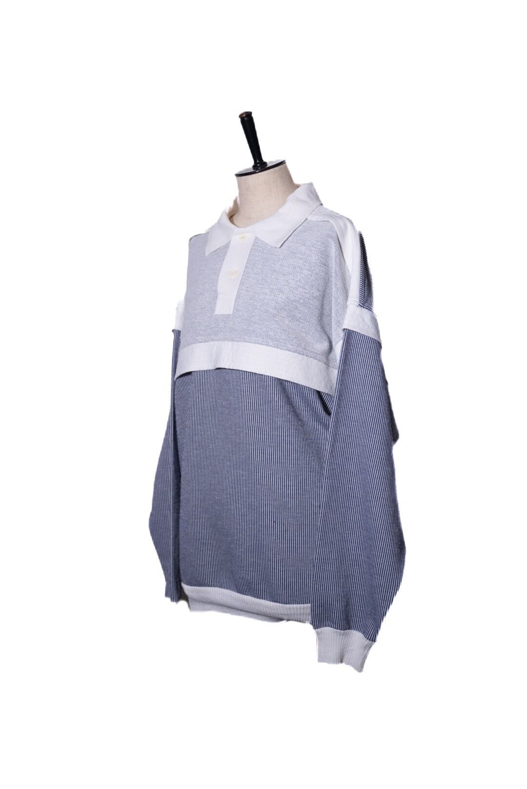 ストライプとホワイトの切り替えデザインのポロシャツです。