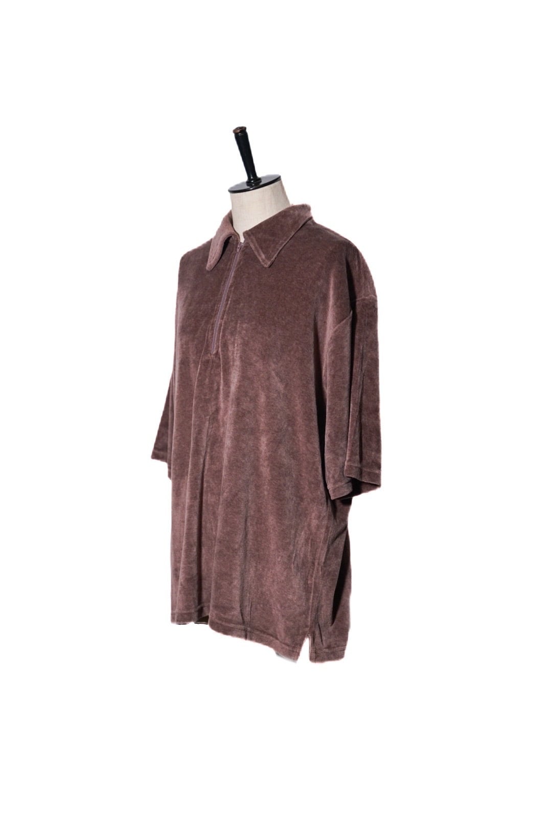 ベロアにハーフジップという意外な組み合わせが、ストリートとラグジュアリーが一枚になったような雰囲気。