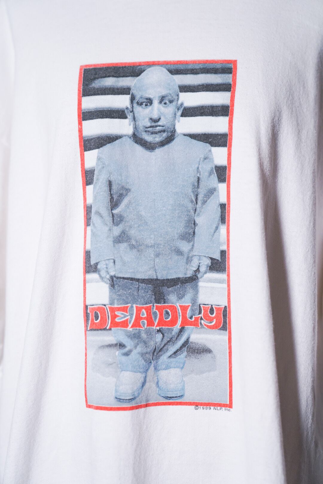 1990年代後半に大ヒットした映画"オースティンパワーズ"より人気キャラのミニ・ミーのプリントTです。