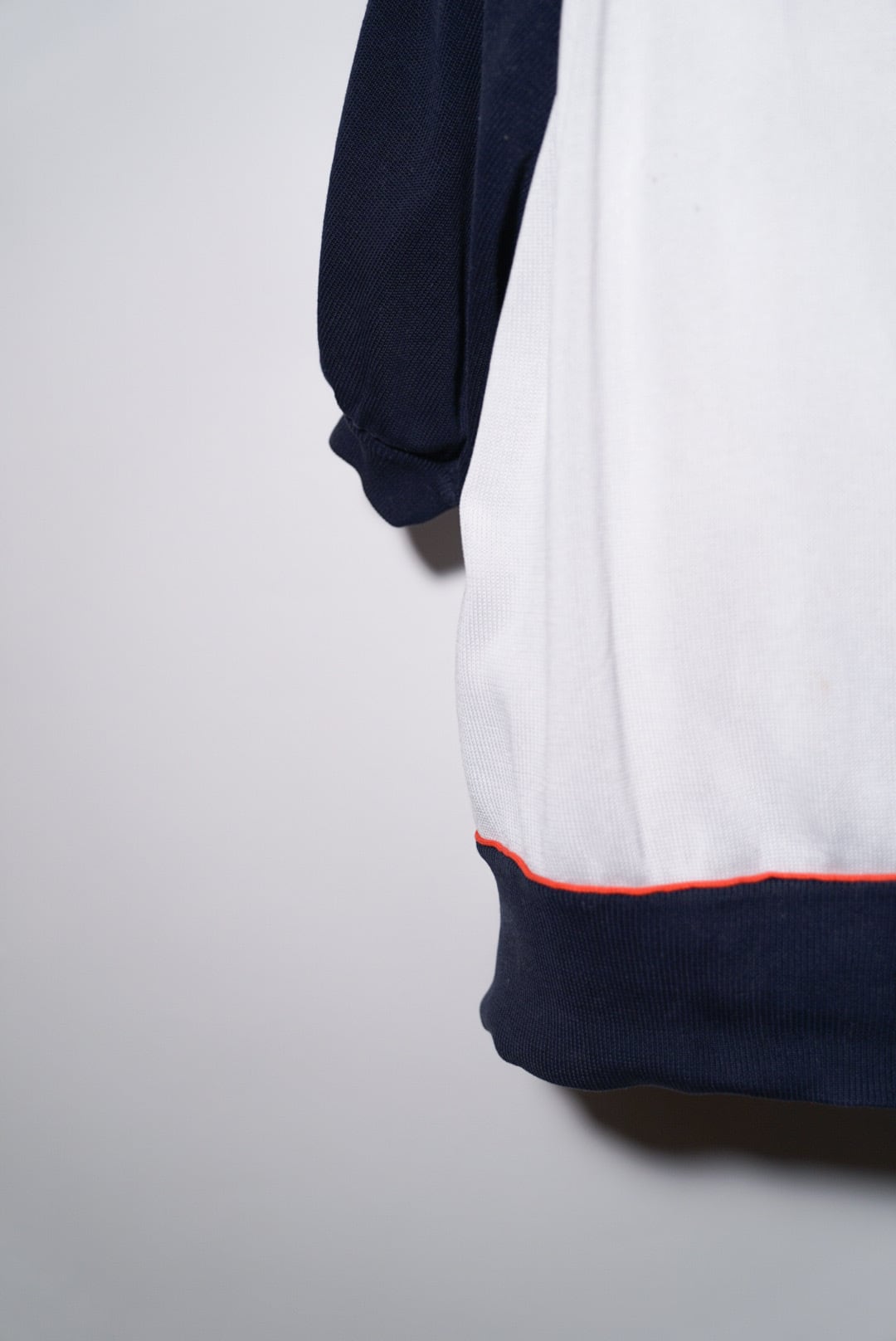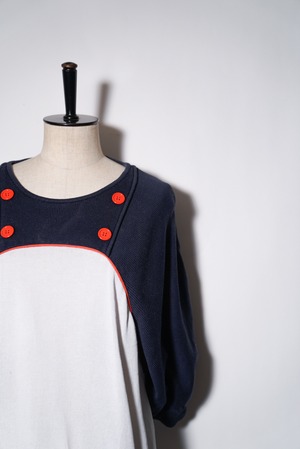 ネイビー地(胸上あたり)にもごく細い白っぽい跡あり。