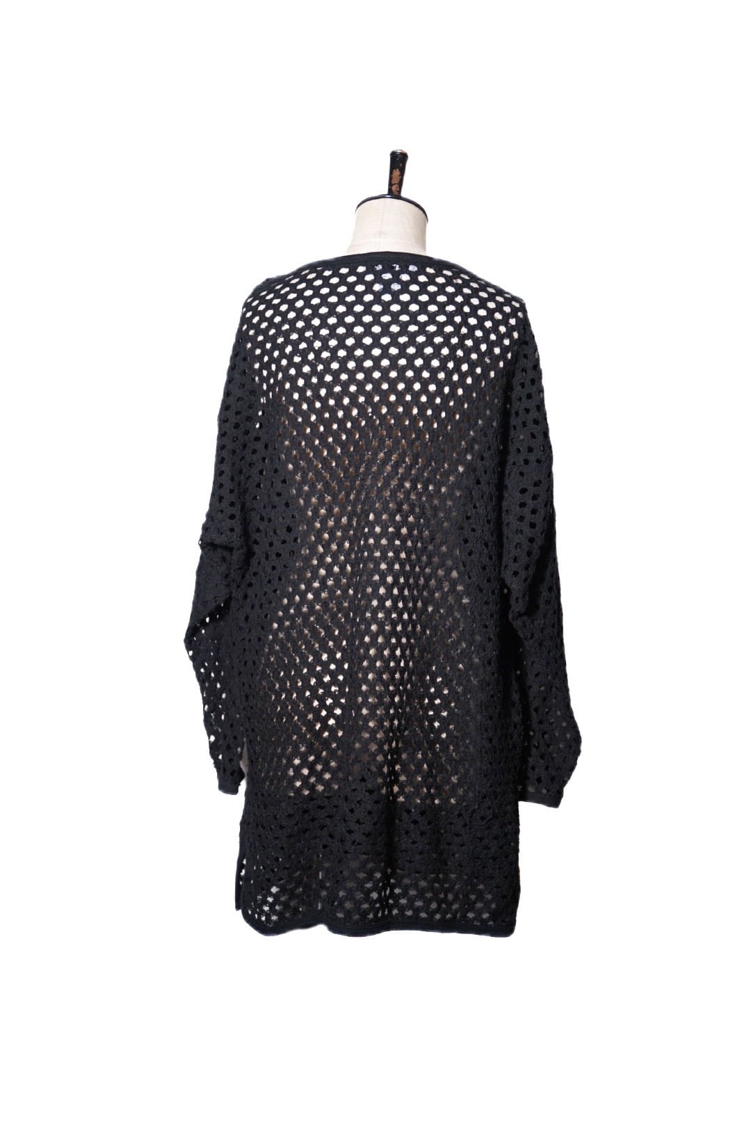 ざっくりとした編み目の透け感が、黒のインナーやワントーンの着こなしに抜けをつくってくれるニットトップ。