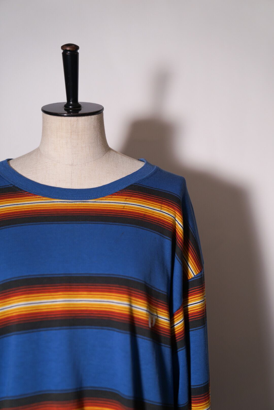 ことらはブルーベースのカラーに独特なデザインのボーダーロンTとなっております。