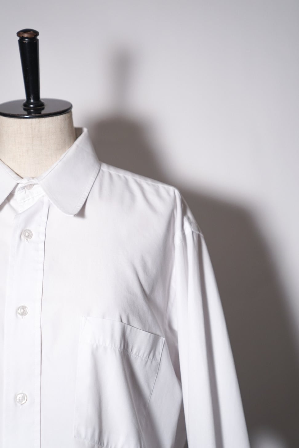 程よい張り感のあるコットンポリ素材で、シワになりにくくデイリーに着やすい一枚。