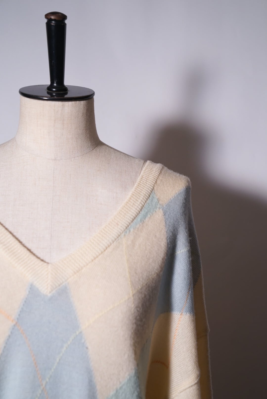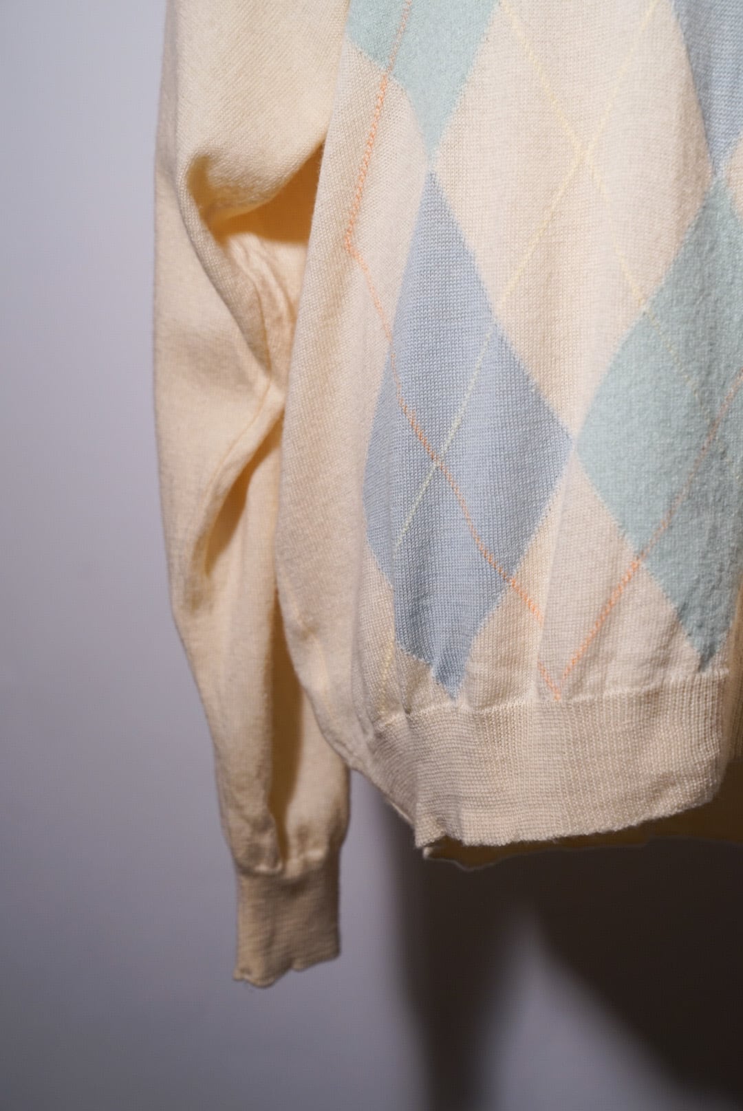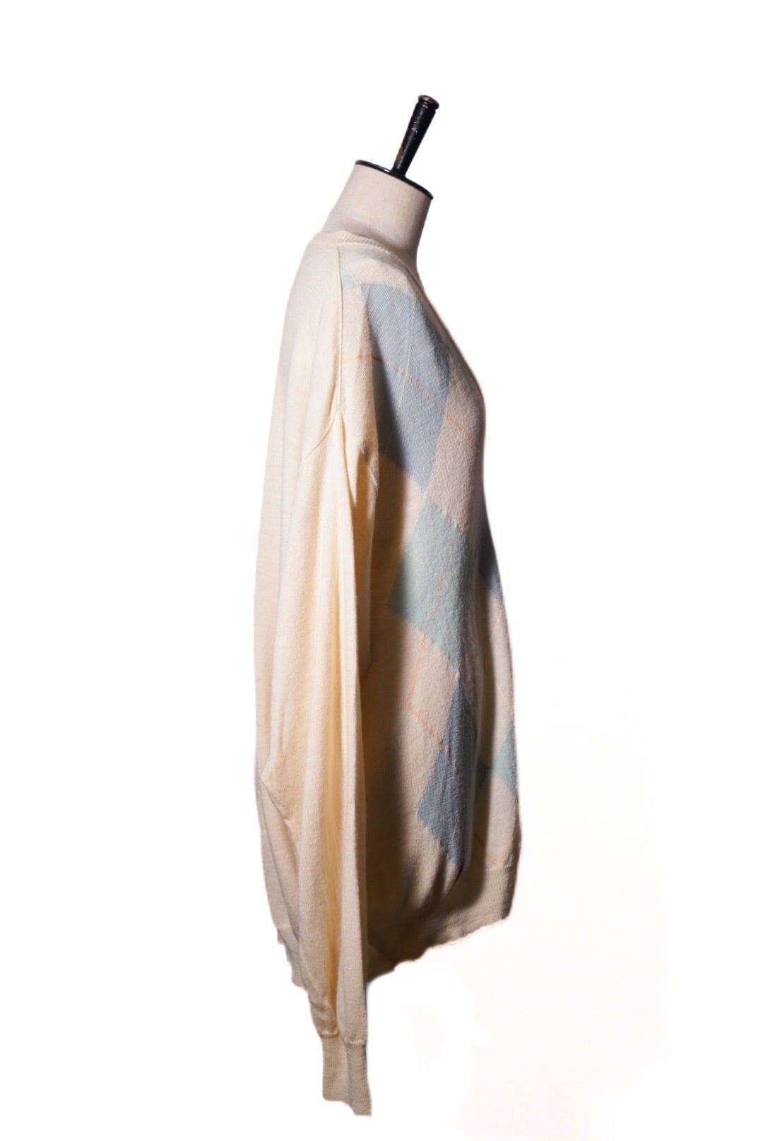 綺麗なオフホワイト、キナリのカラーに淡いカラーでのアーガイル柄がとても可愛いです。