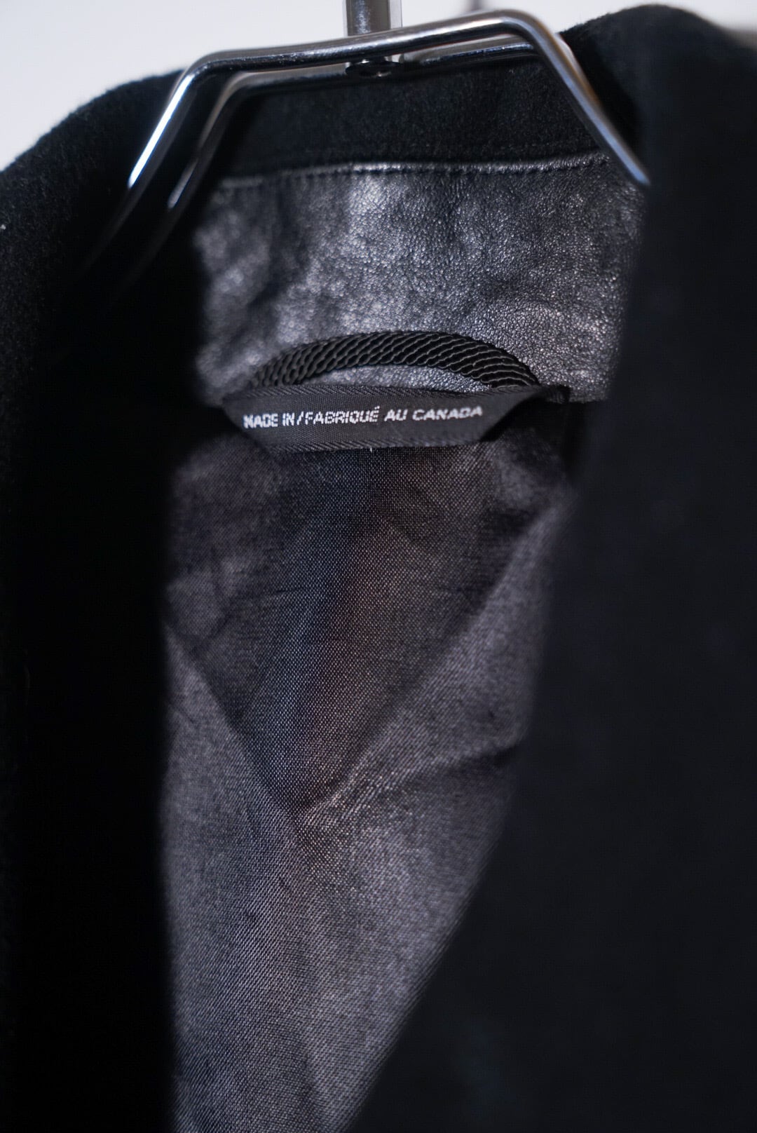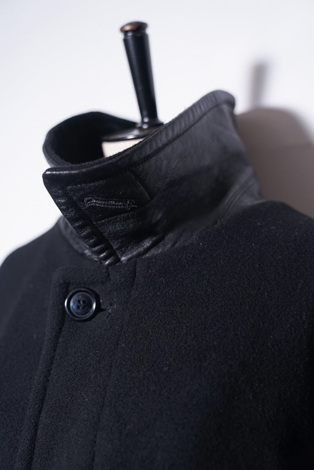 ウールとカシミアの生地感はかなり高級感があり、比翼仕立て、そして肩部分と襟裏のレザー…