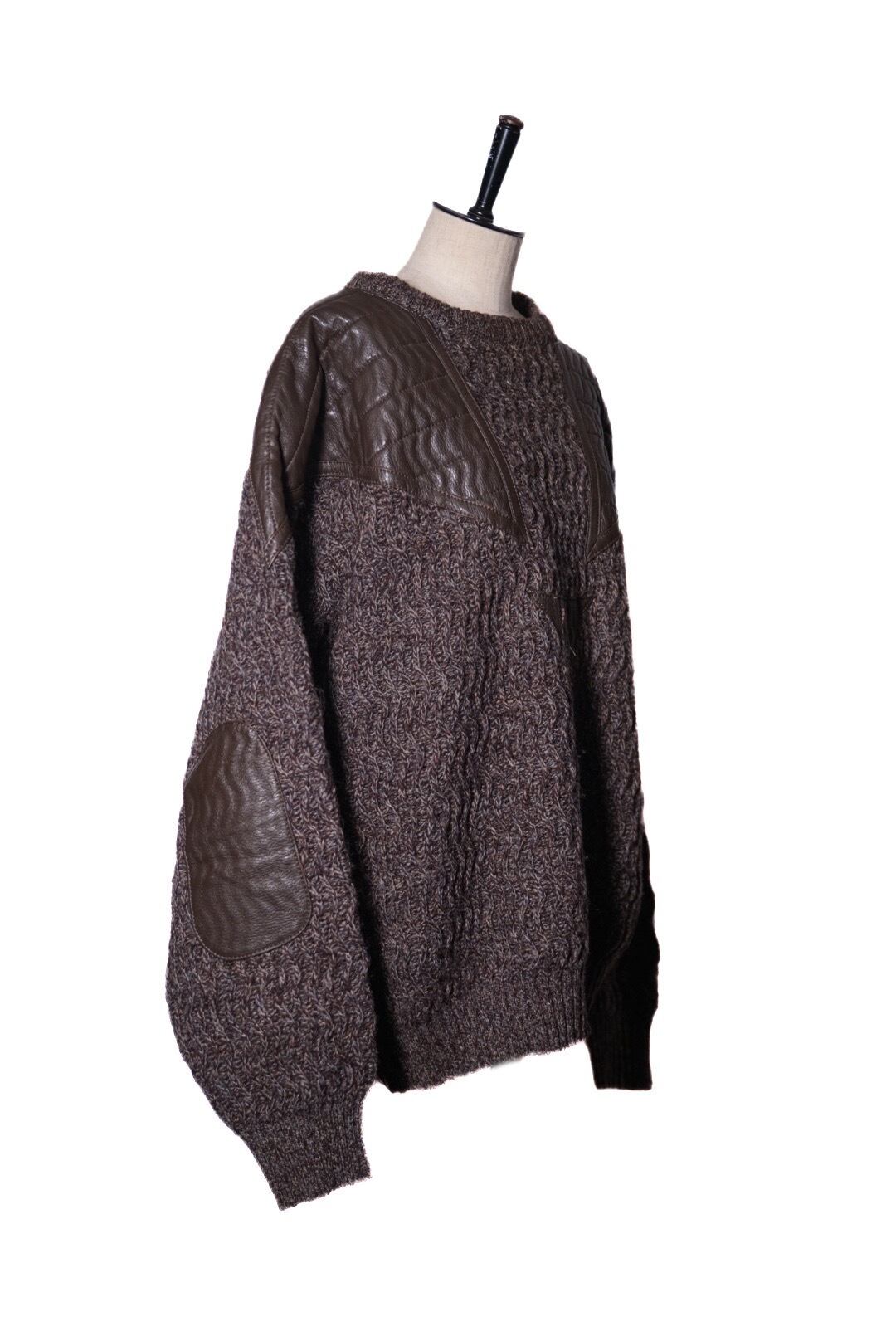 ニットとレザーを切り替えたプルオーバー。