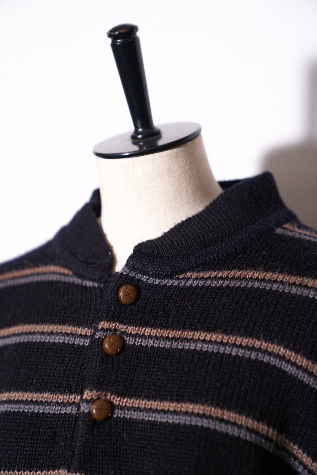 ニットのヘンリーネックは珍しく、一枚で着てもシンプルすぎない気の利いたデザイン。