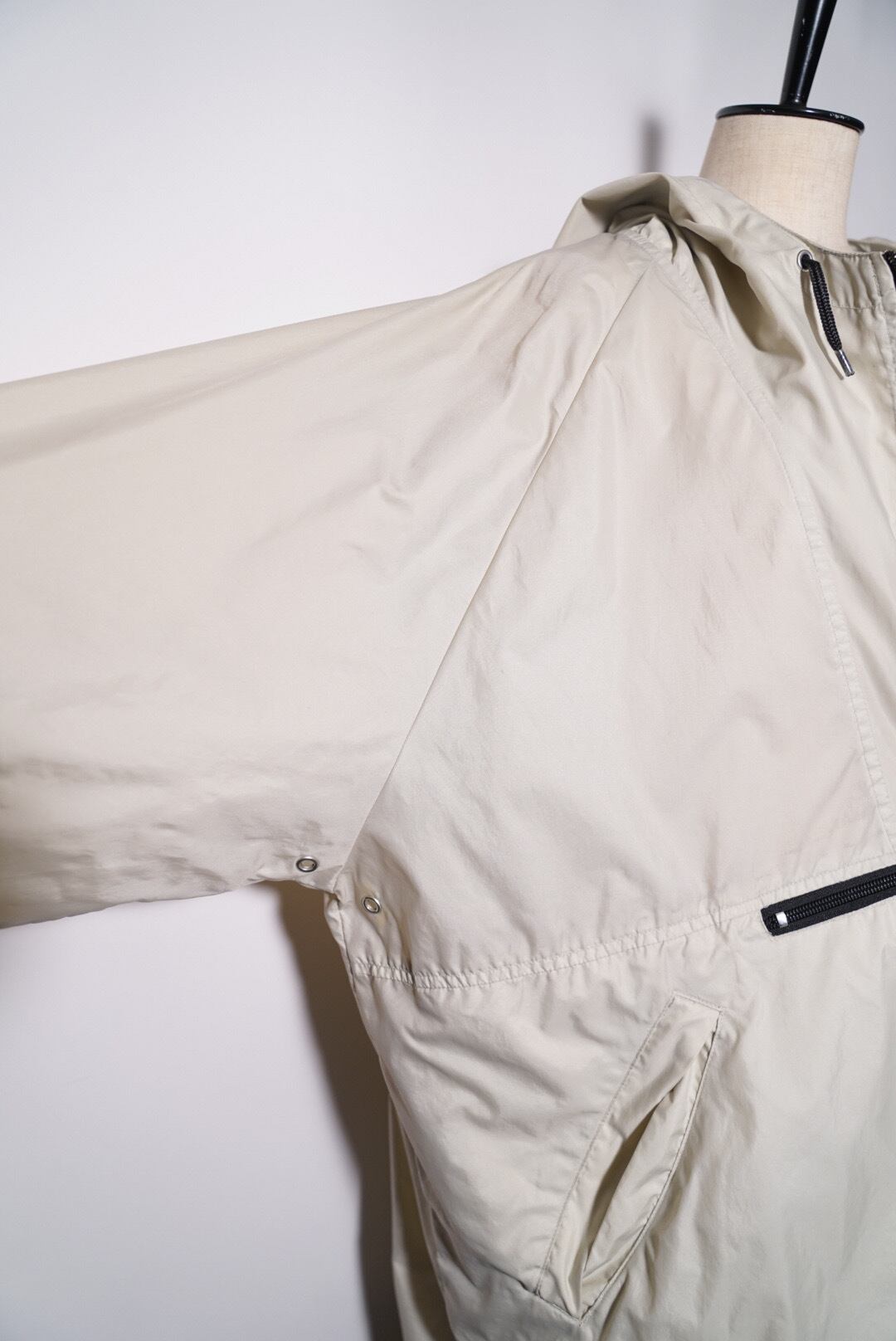 脇下にベンチレーションホール。裾にはドローコードも仕込まれていて絞ることも出来ます。
