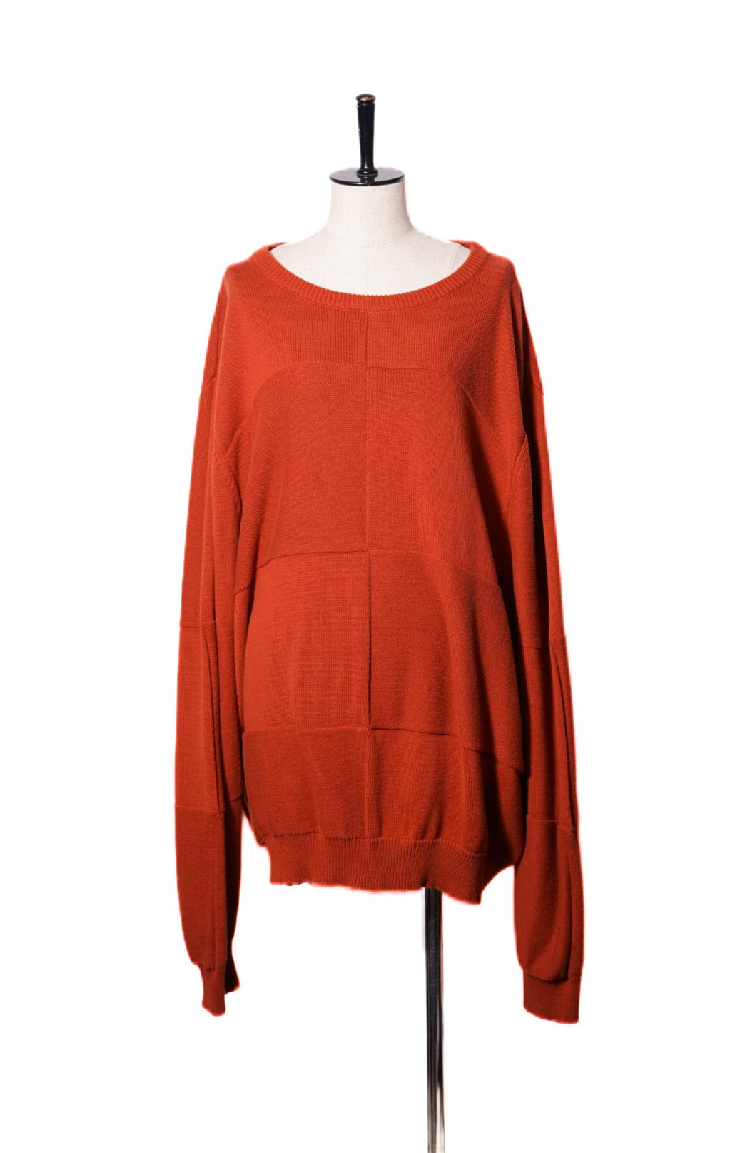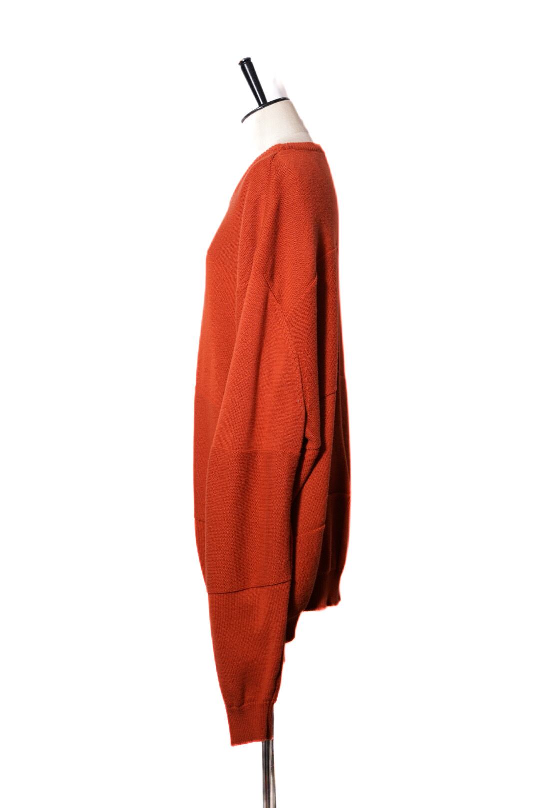 生地の縫い合わせにより凹凸が作られている立体的なデザインのコットンニット。