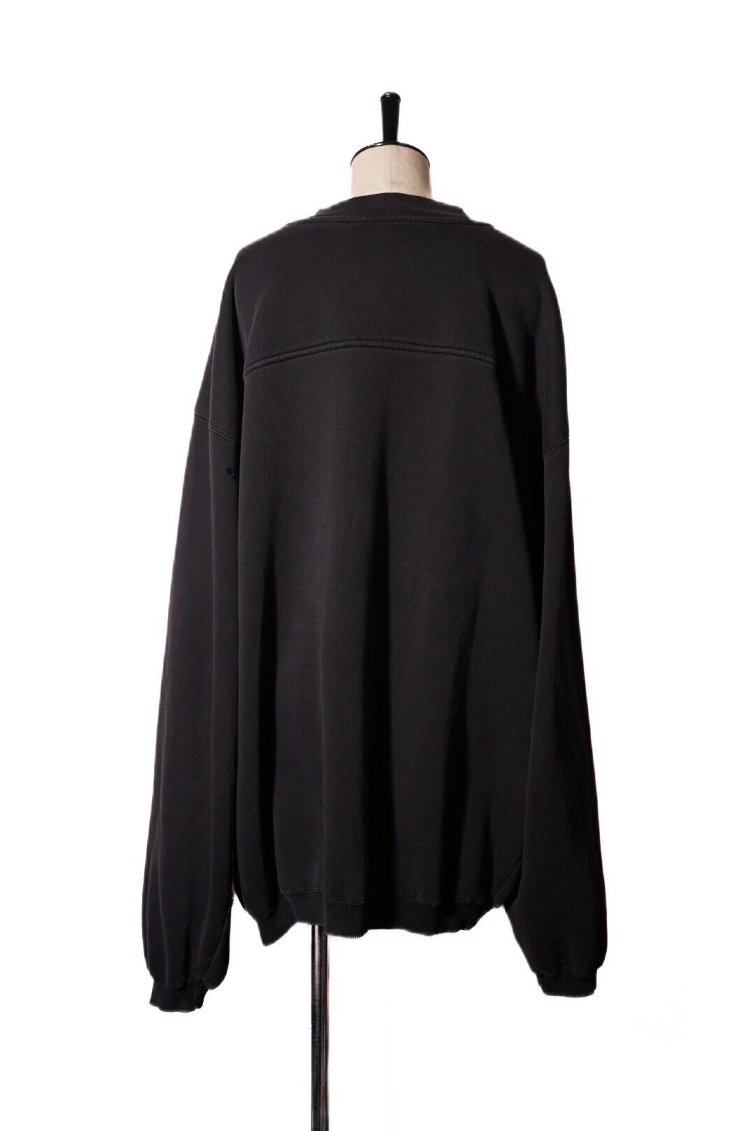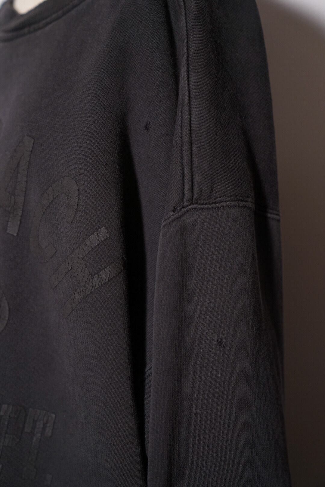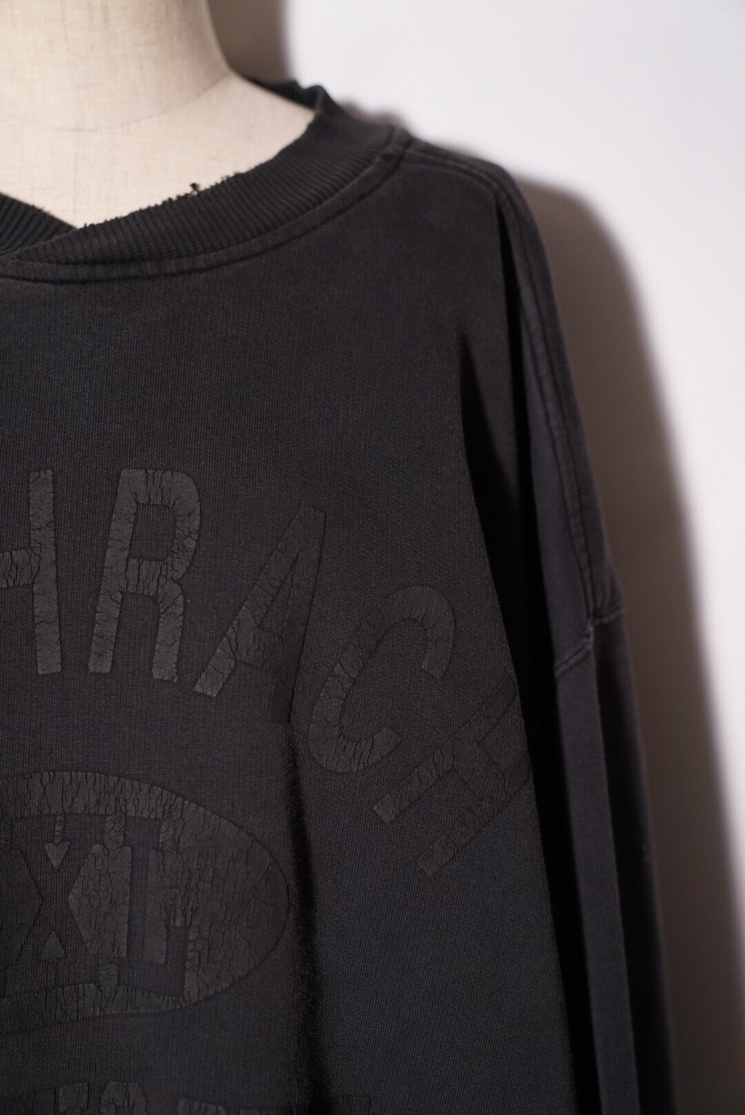 こちらはフェードしたブラックのボディに同色のプリントを施しているスウェットです。