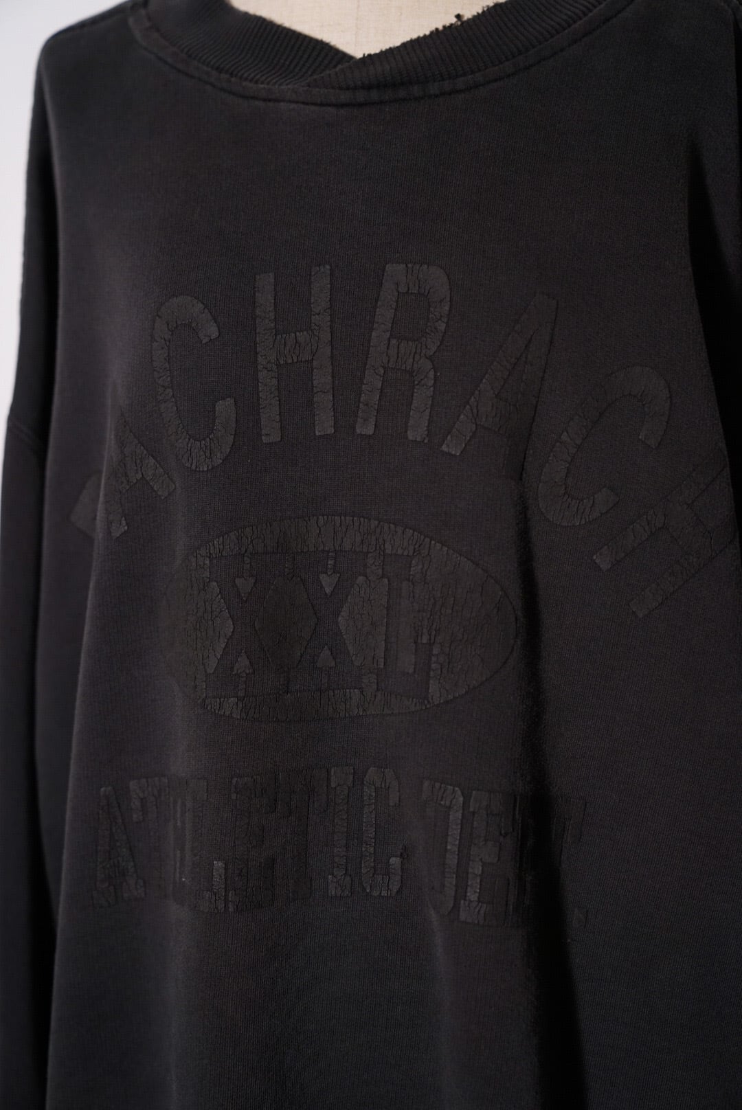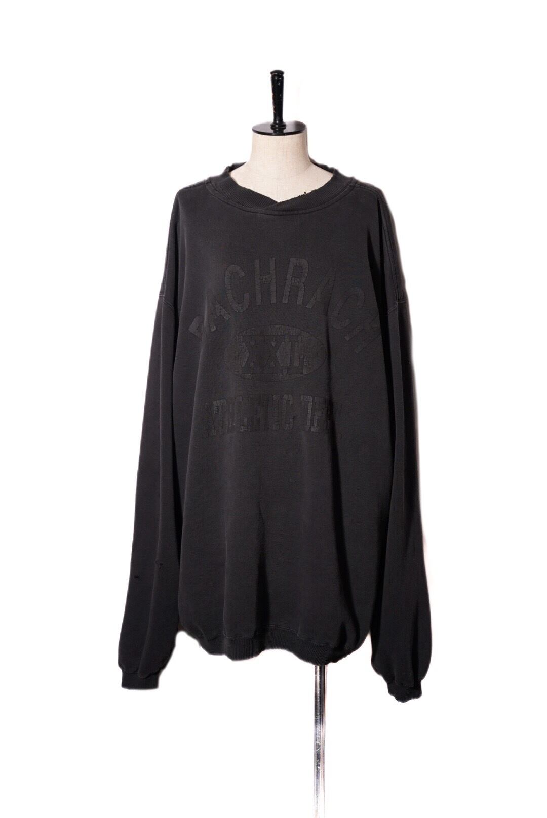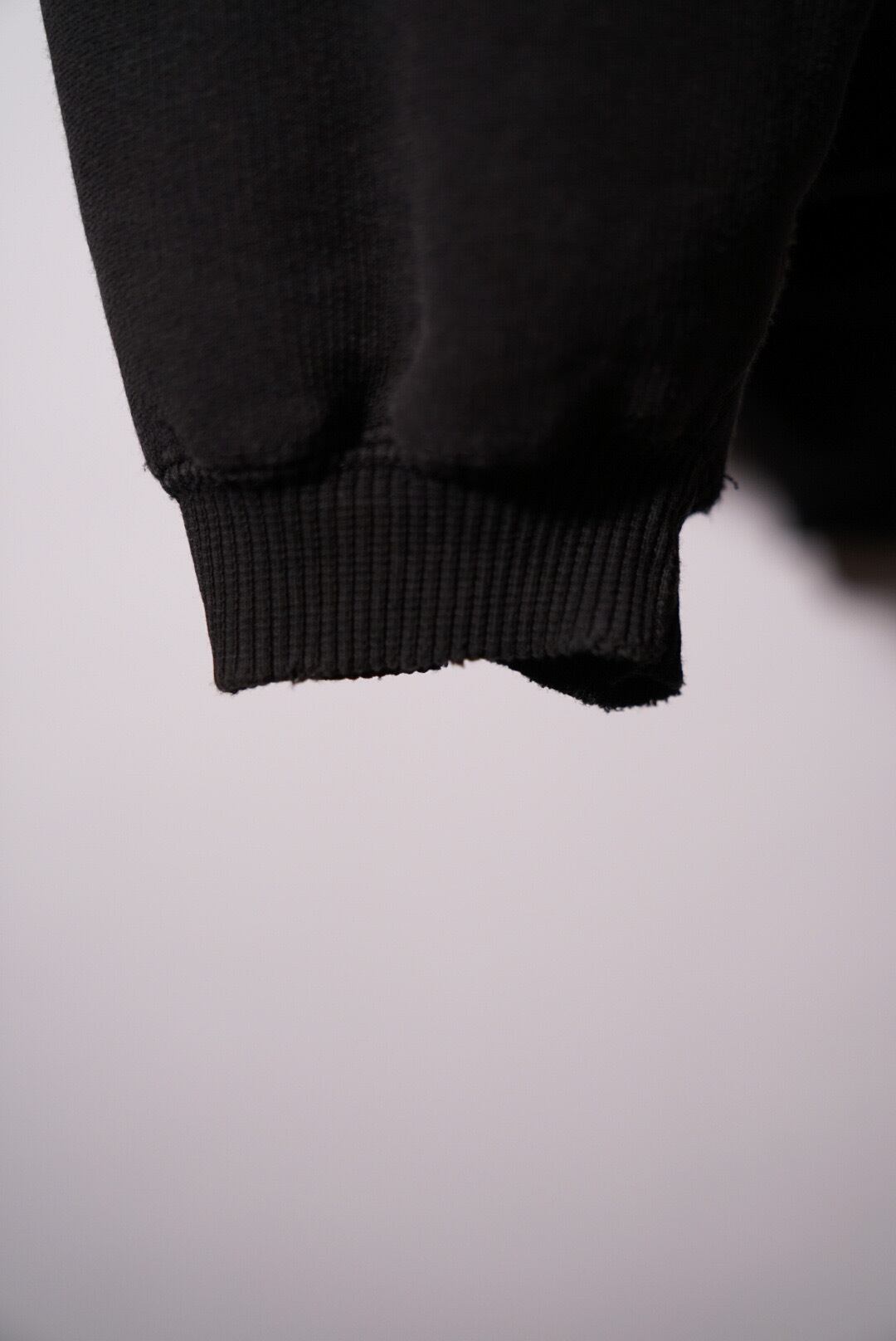 こちらはフェードしたブラックのボディに同色のプリントを施しているスウェットです。