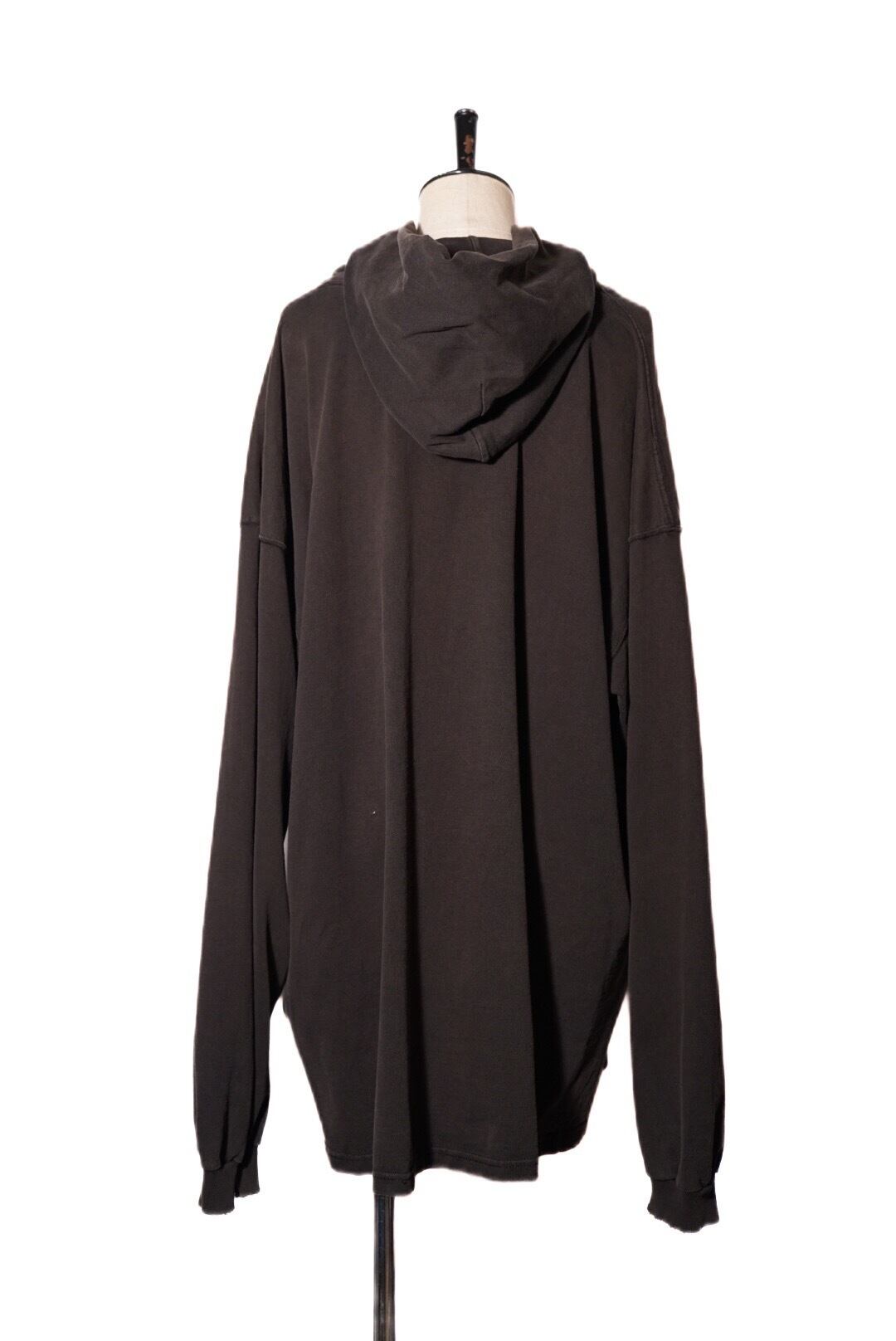 スウェットのように厚い生地感ではなくロンTにフードをドッキングした形です。