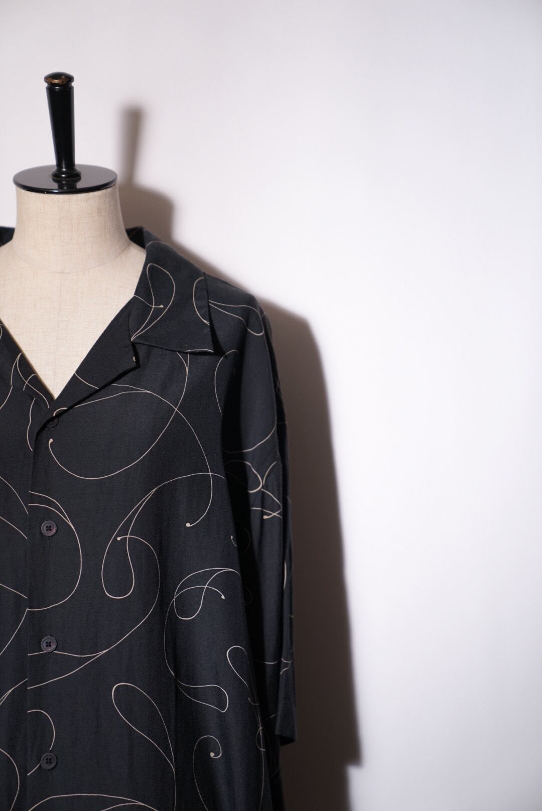 ブラックカラーにベージュのアブストラクトな柄がモード感があります。