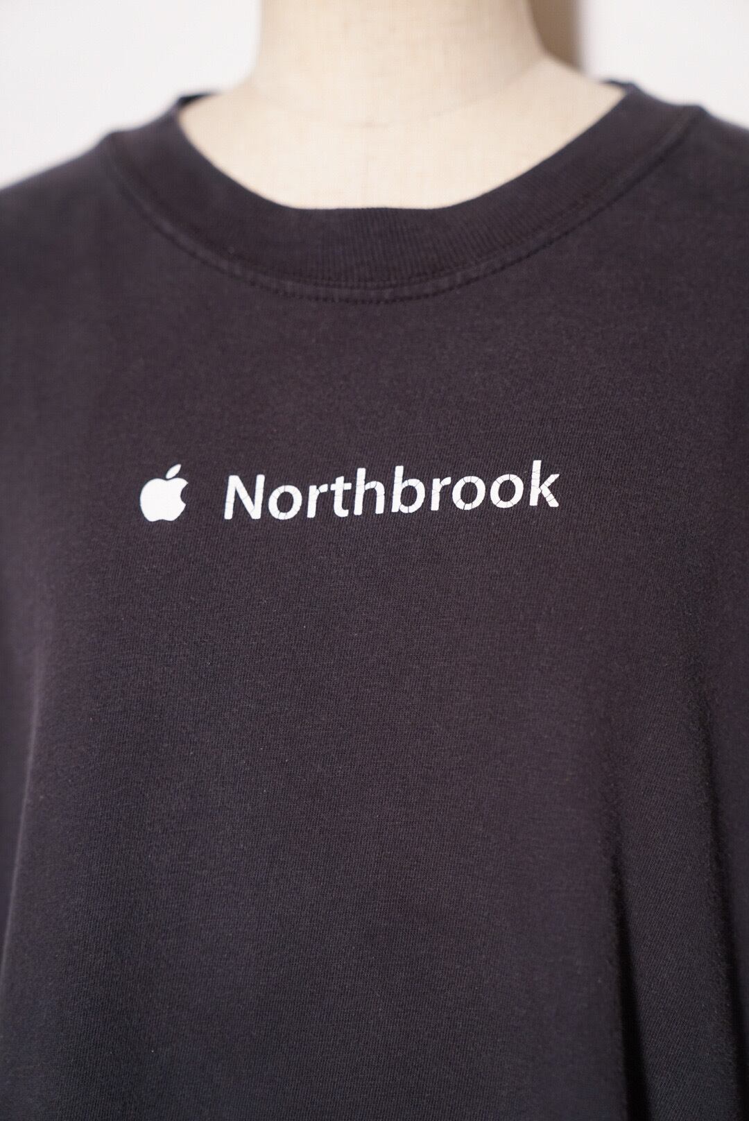 フロントにアップルのロゴとノースブルックのプリント、バックには首元に小さく文字が入っているシンプルながら少し珍しい1着だと思います。