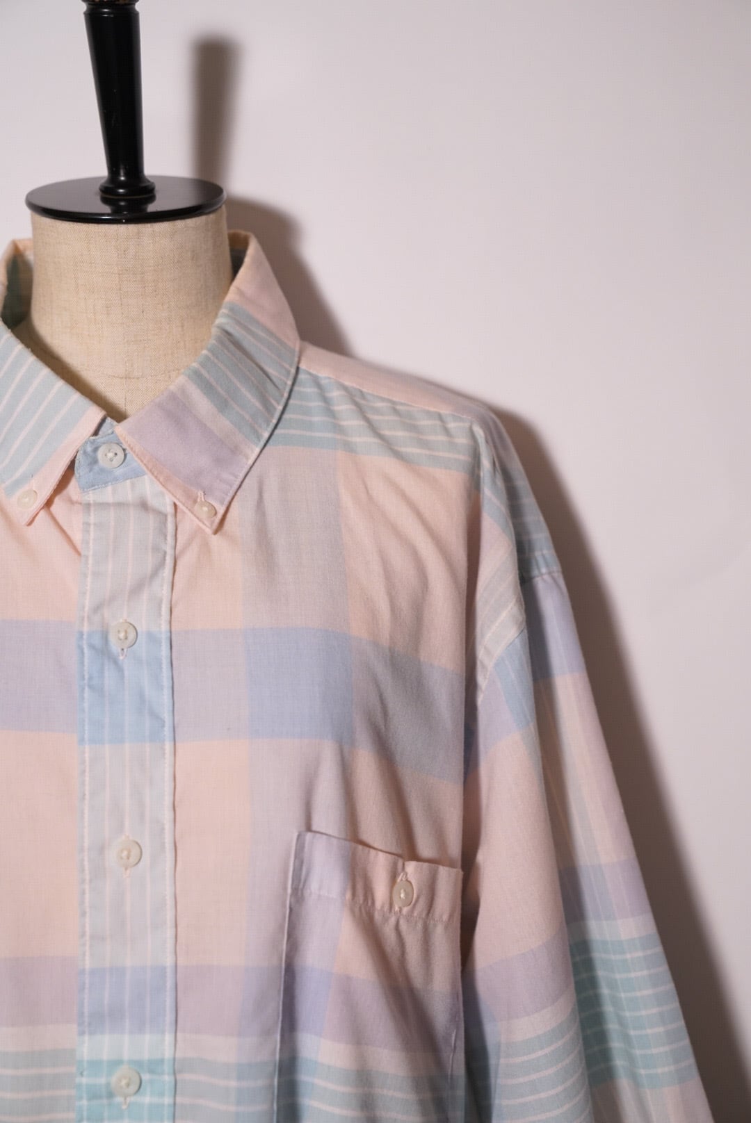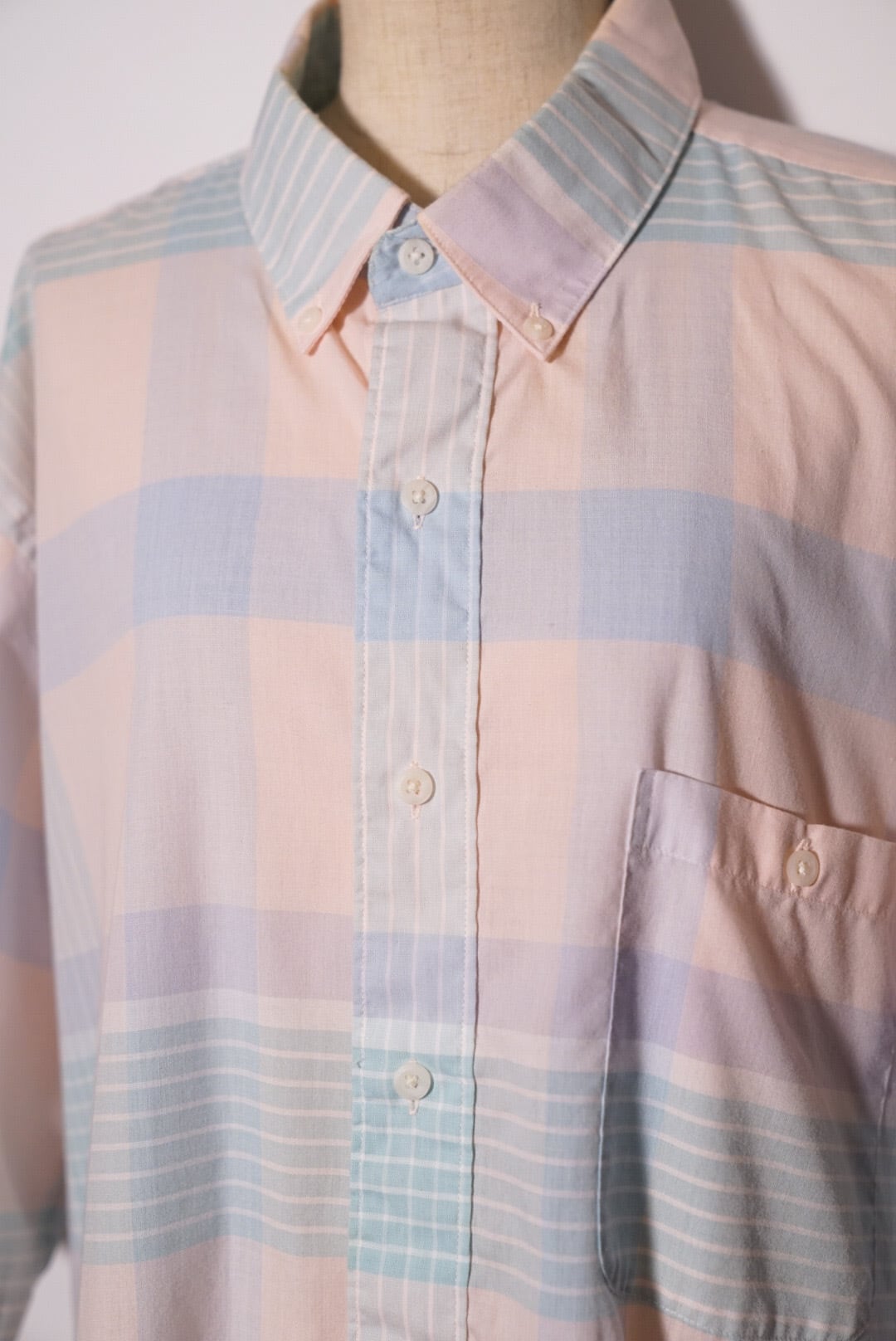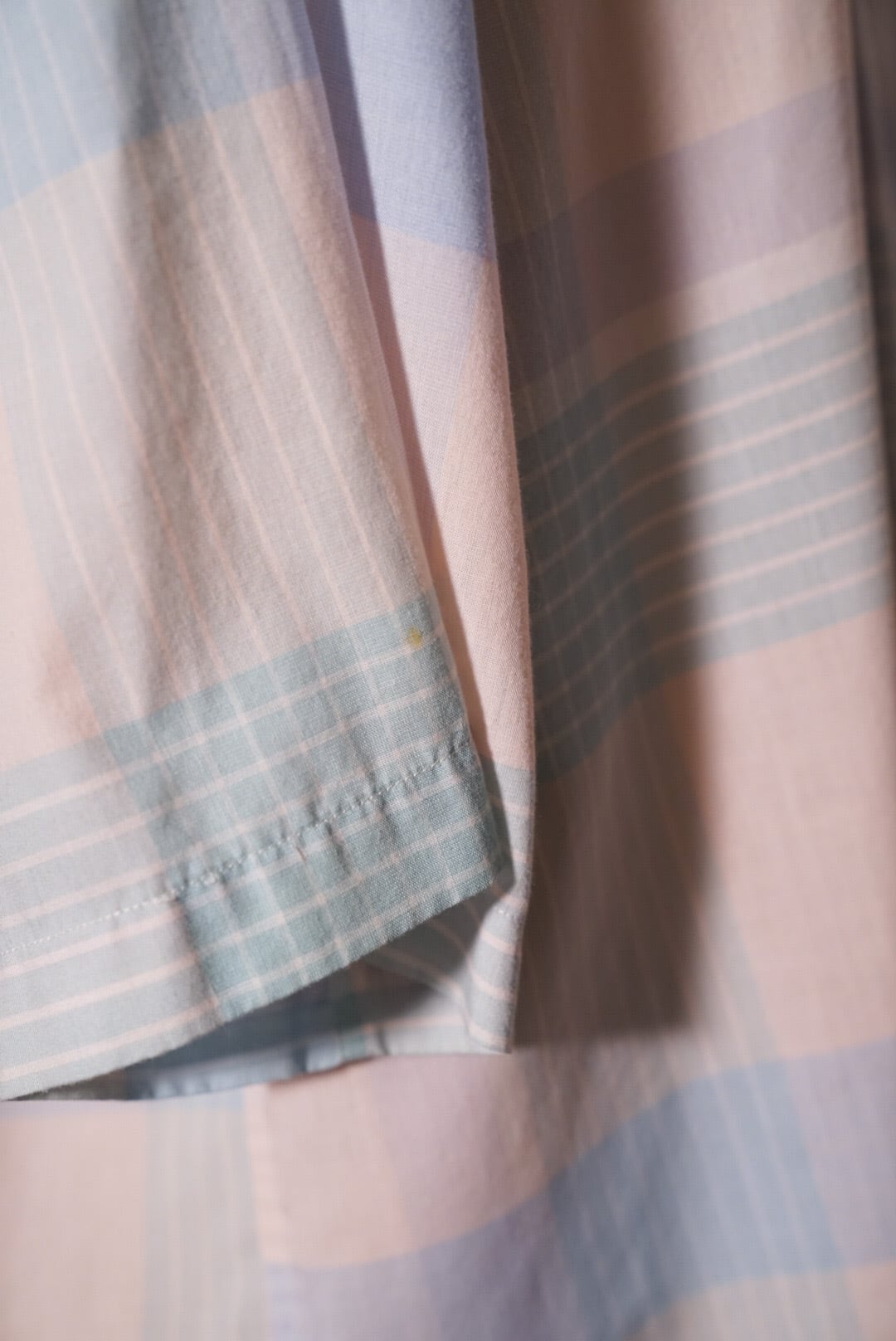 チェック柄の中にもボーダーが入っていてコットンポリなのでシワにもなりにくく、優しい質感も魅力的です。