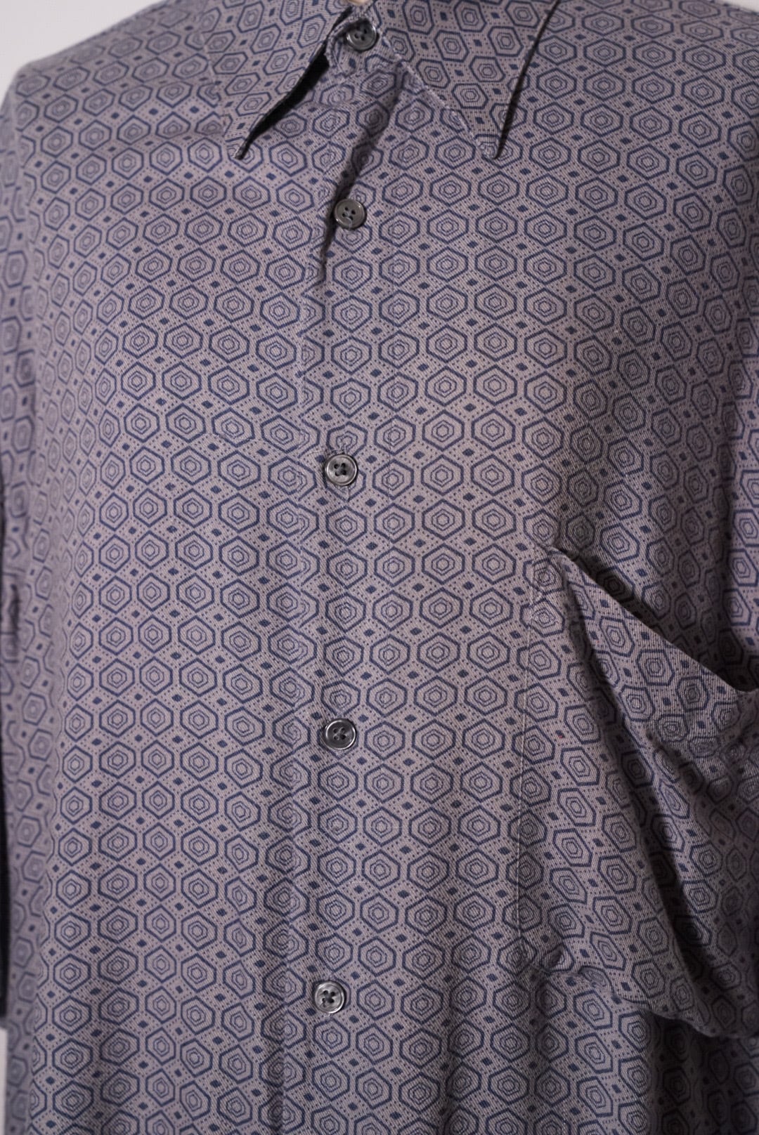 カラー、デザイン共に形容し難いですが、インパクトがありコットンシャツやリネンシャツにはない質感に惹かれます。
