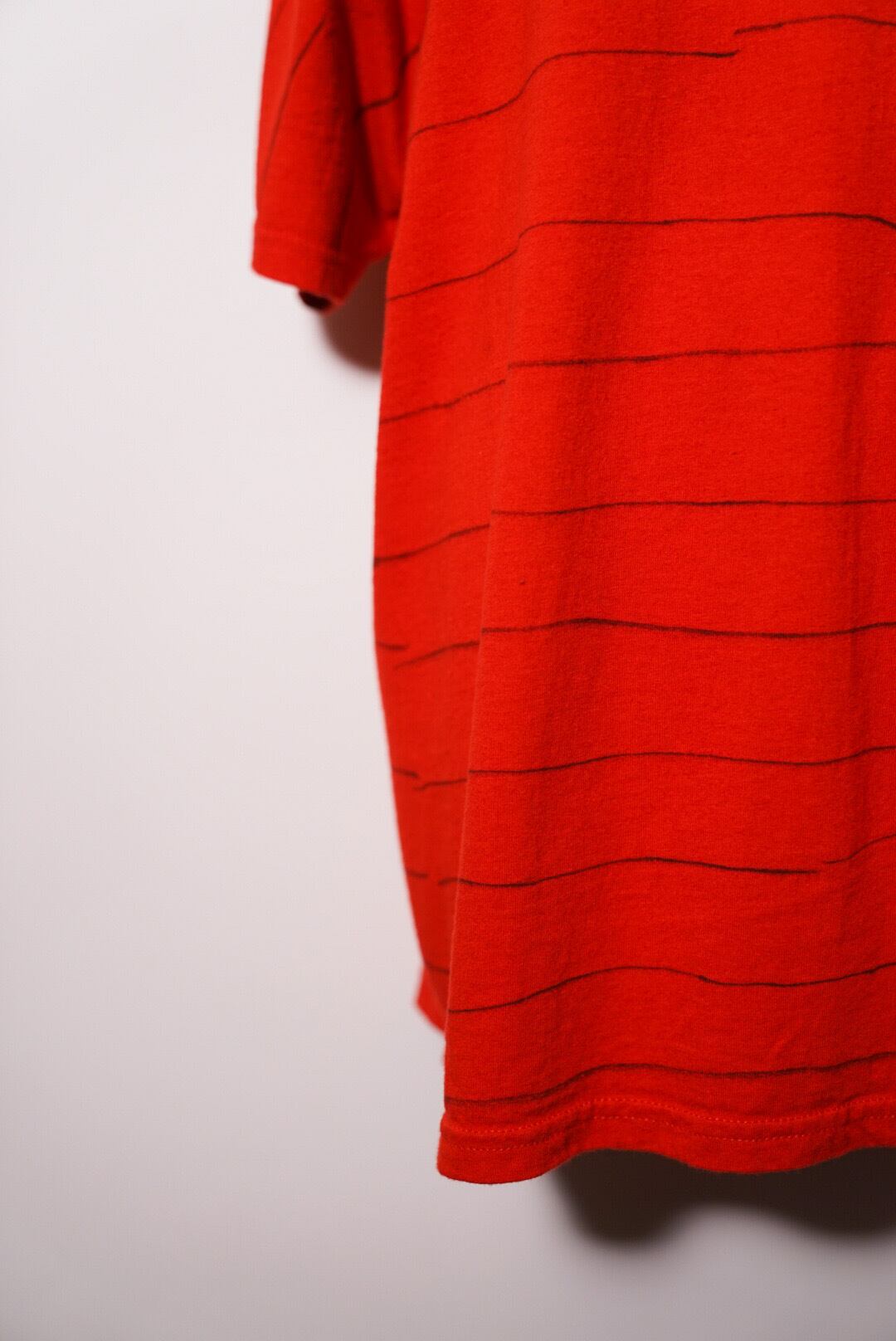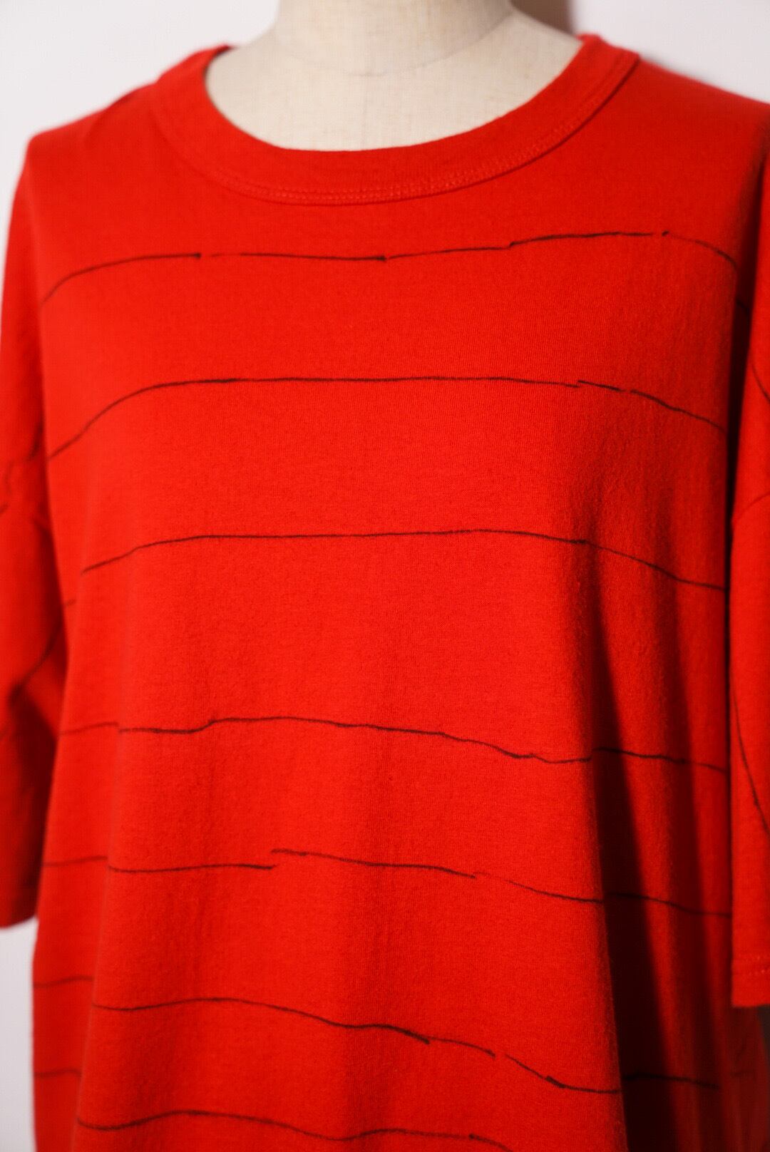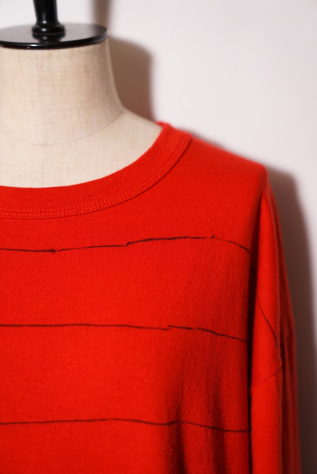 目の覚めるようなボディのレッドに、手書きのブラックのライン。