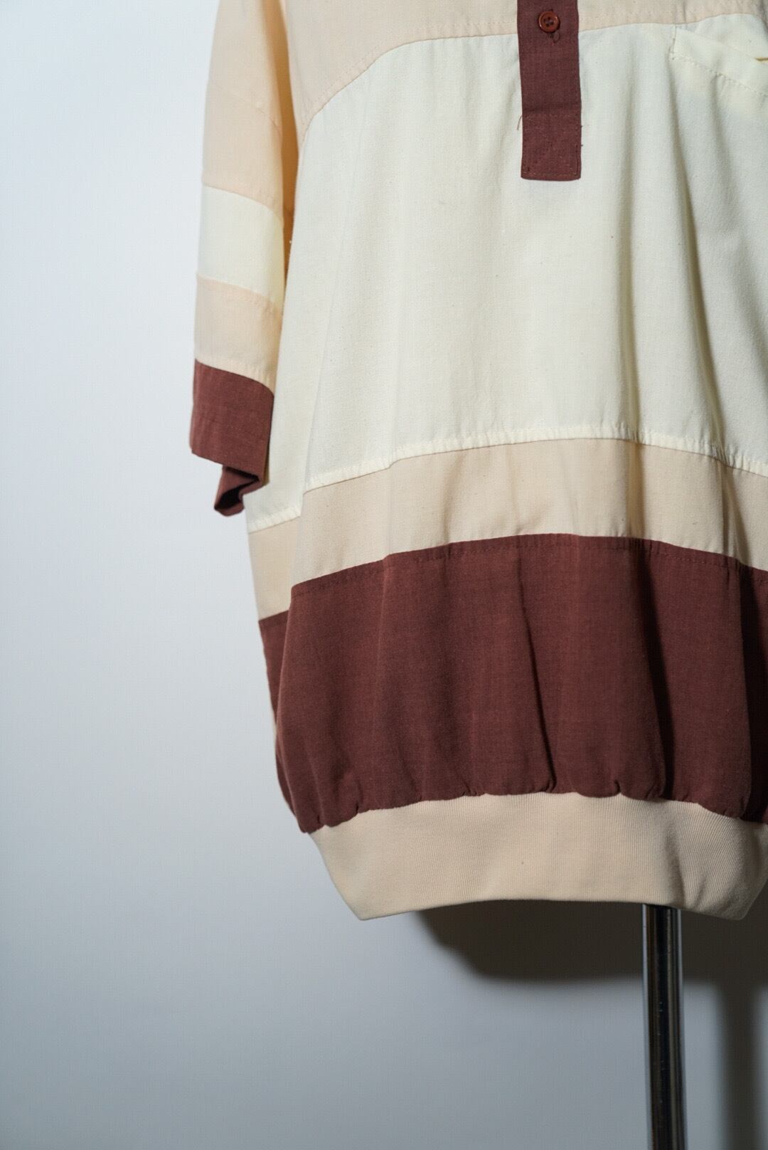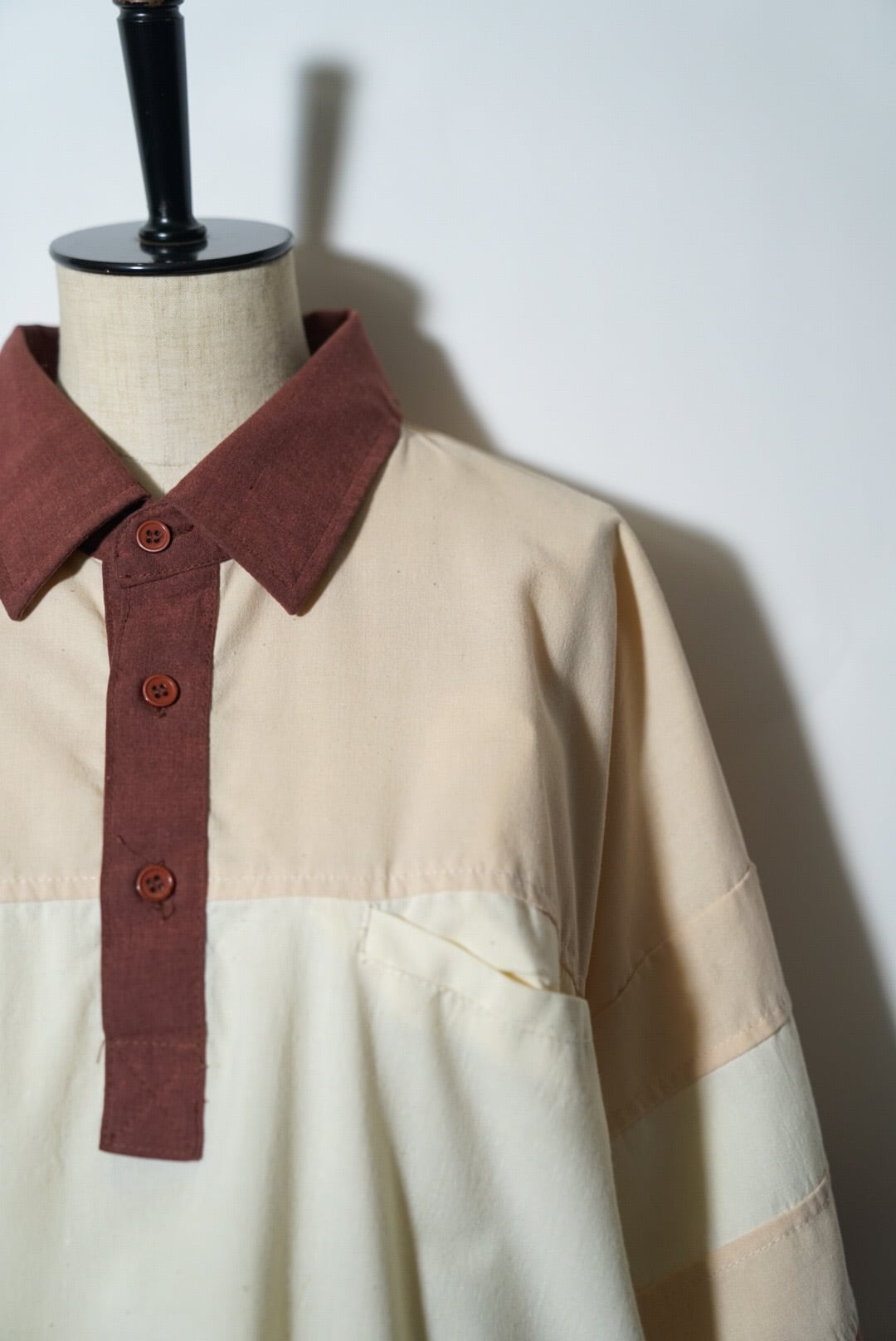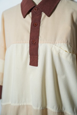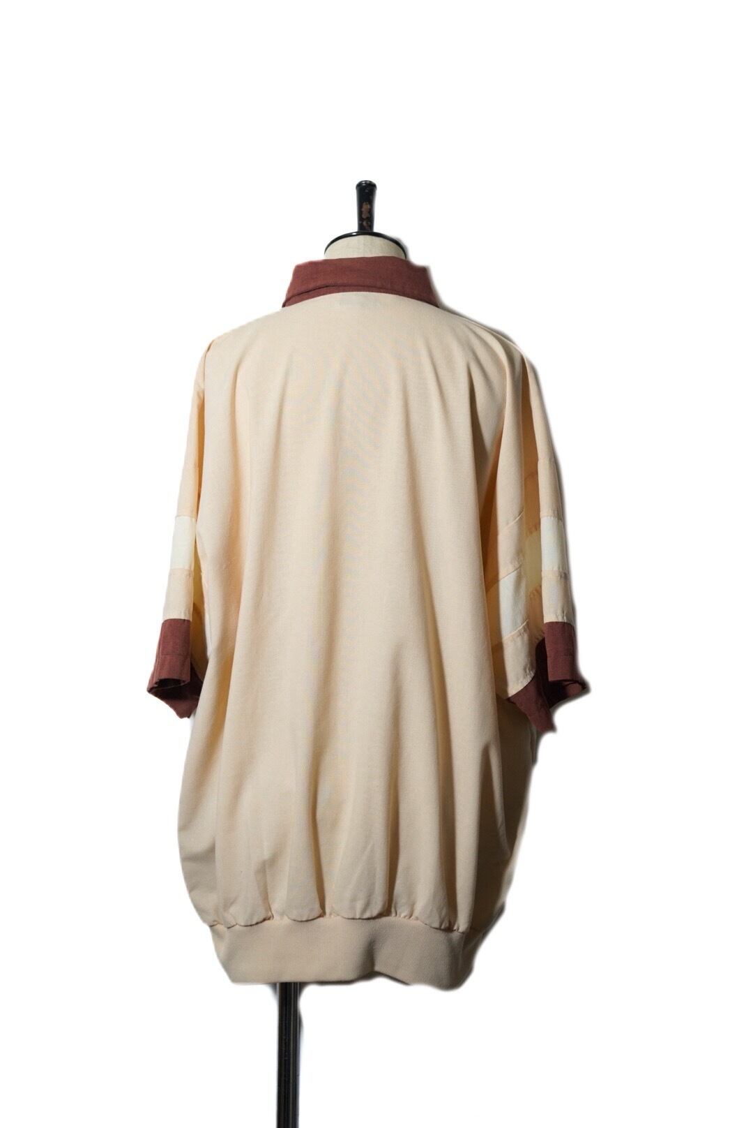 この手のポロシャツは袖にもリブがつくものが多いと思いますが、こちらの袖にはなし。