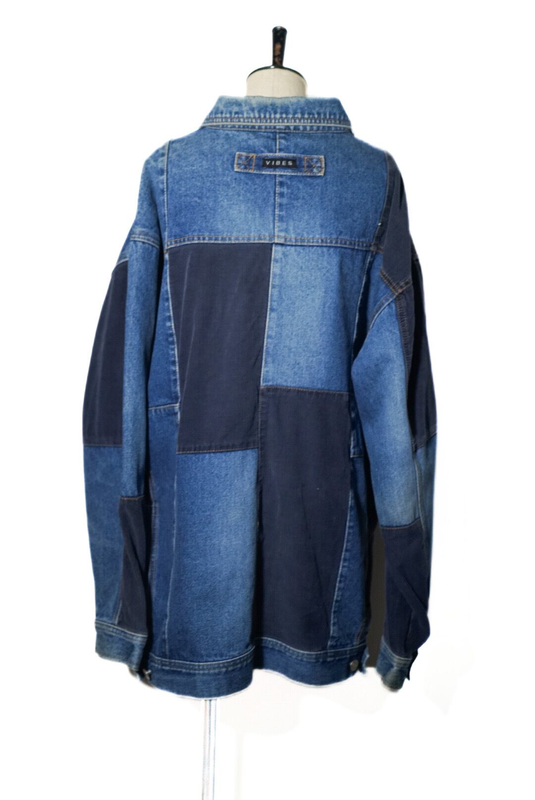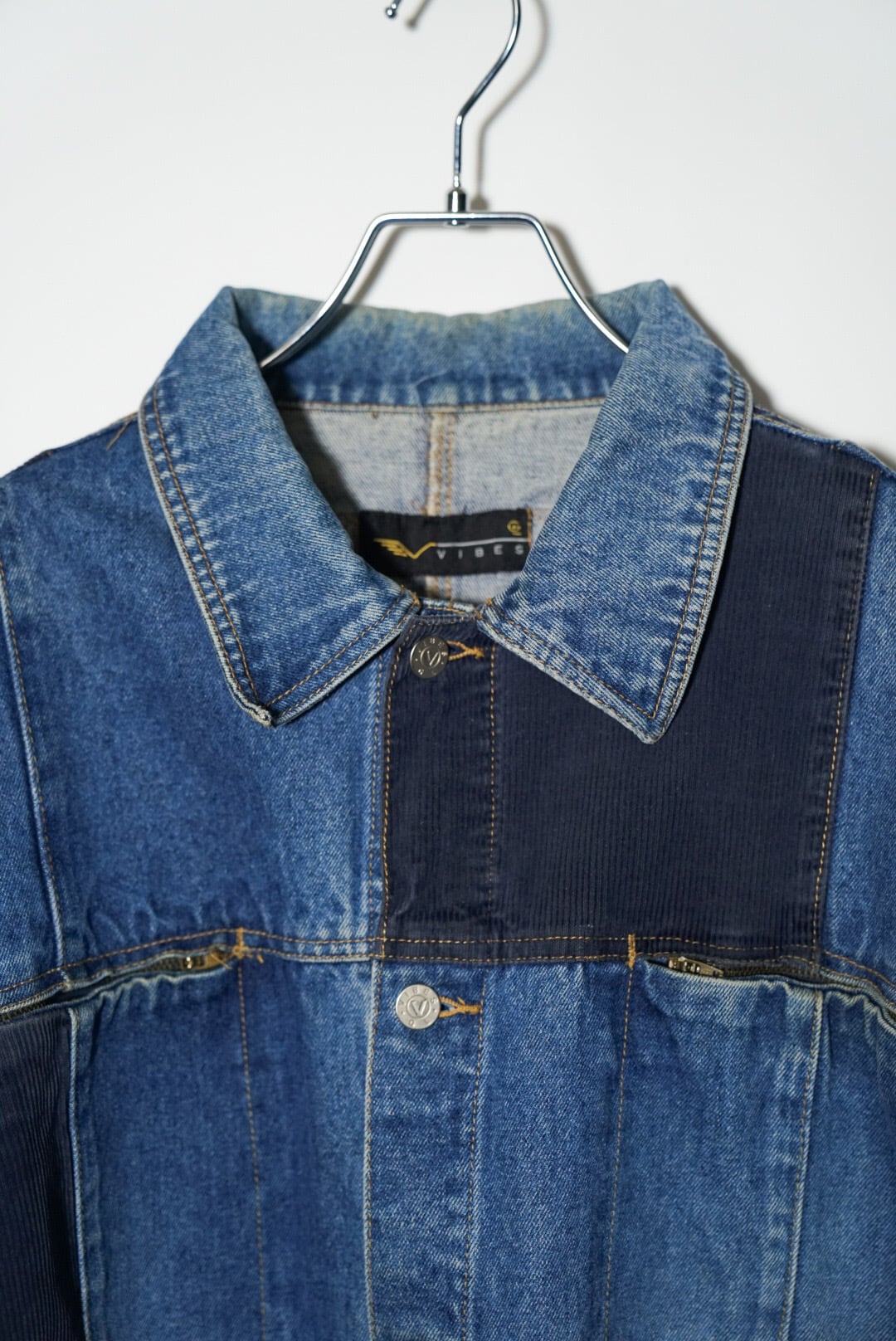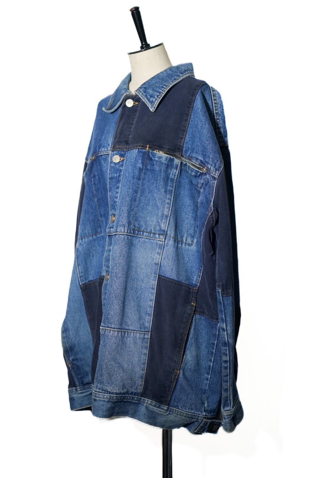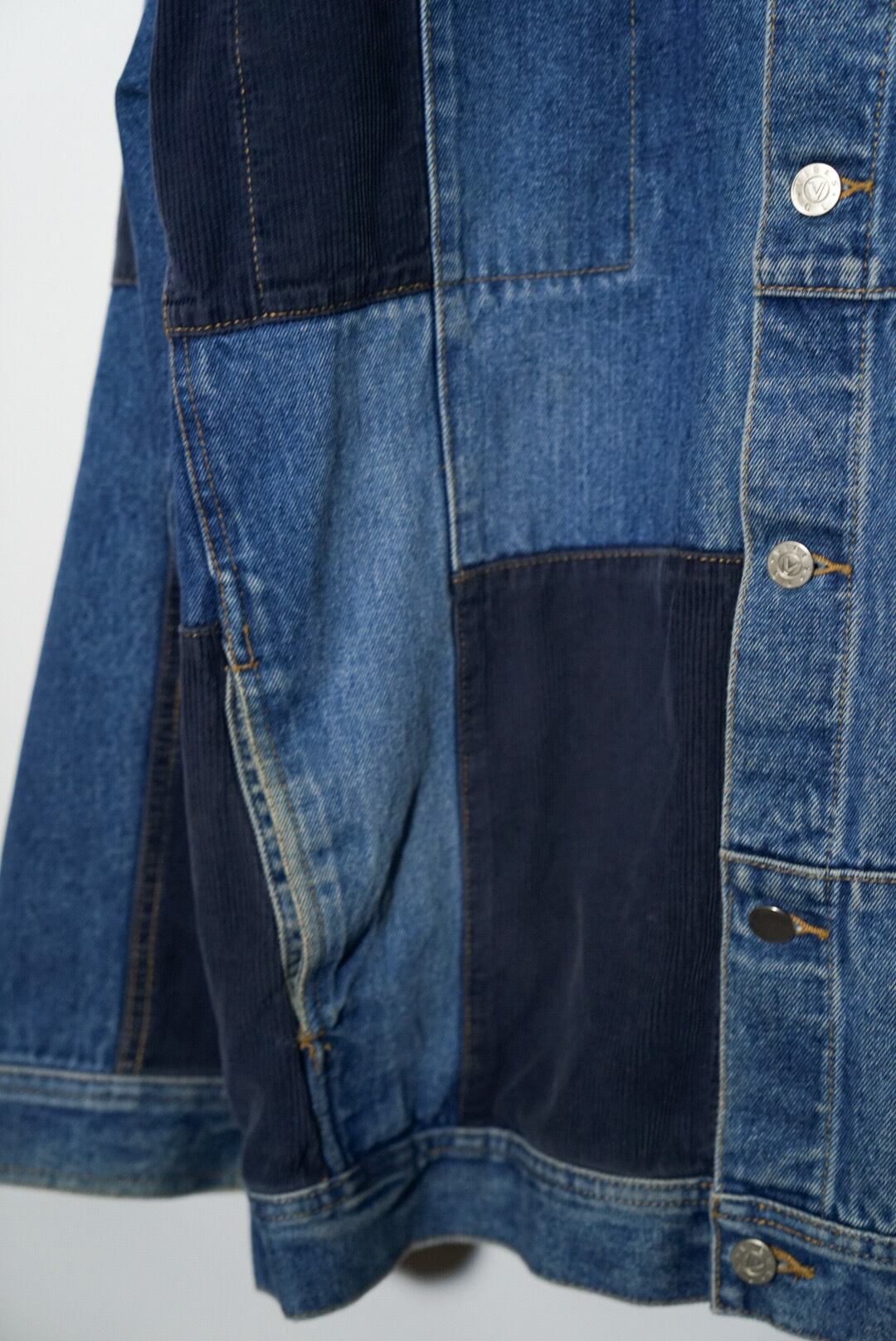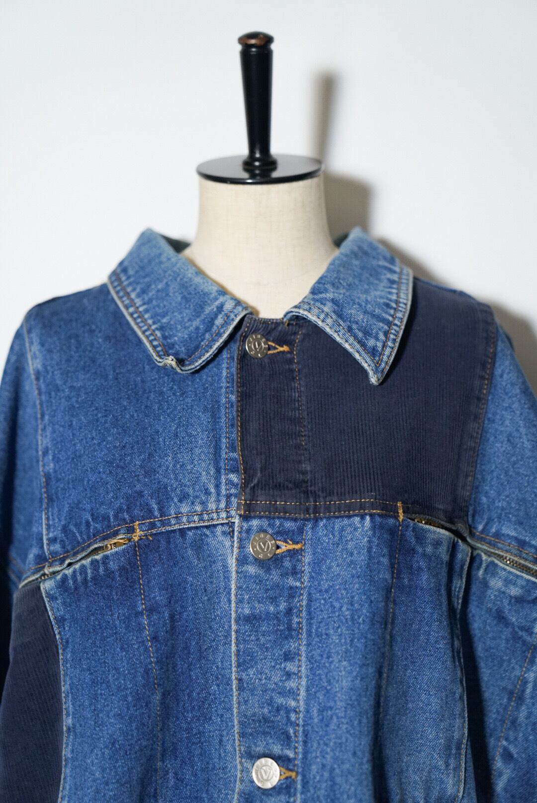 細畝のコーデュロイとデニム生地の継ぎ接ぎジャケットです。
