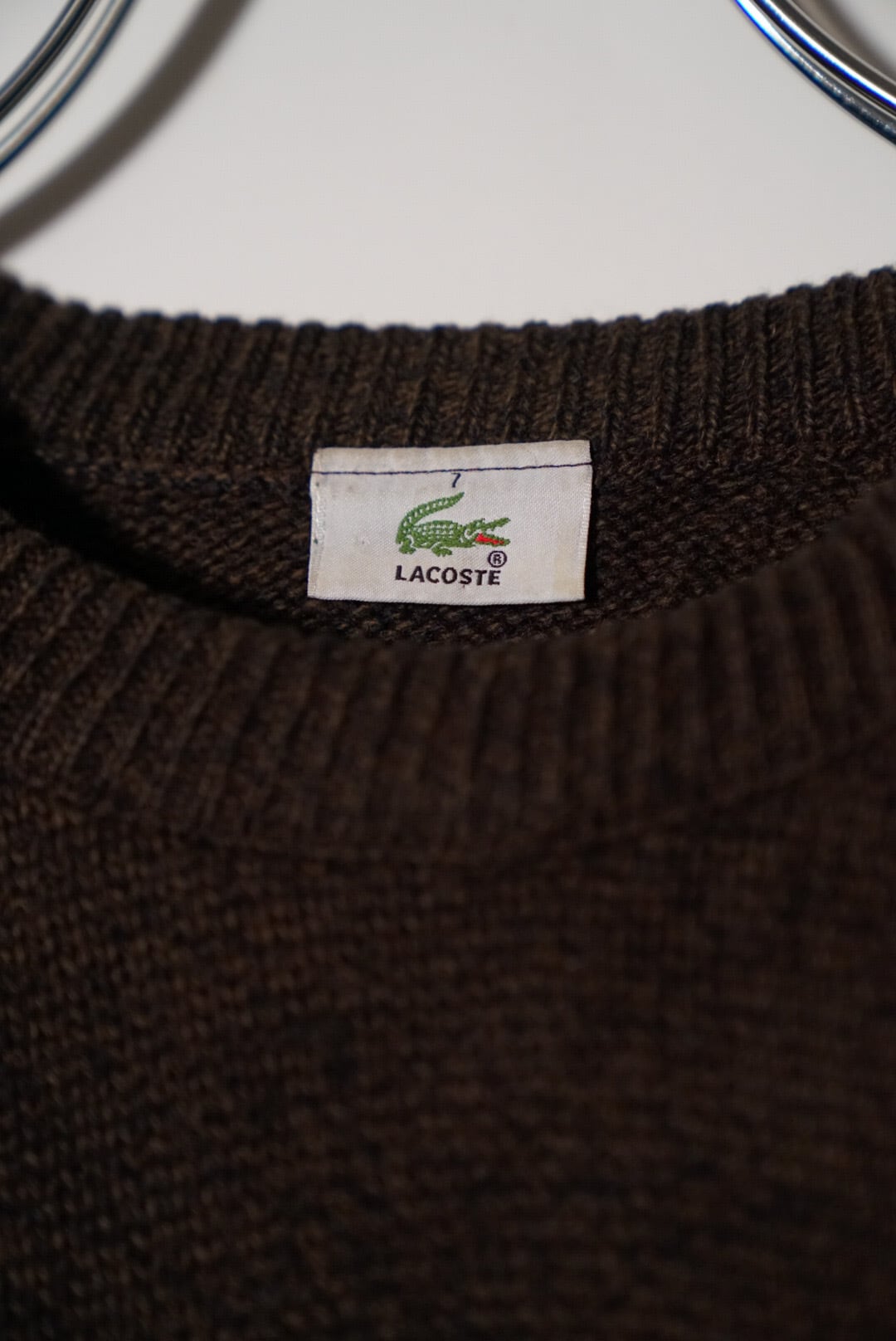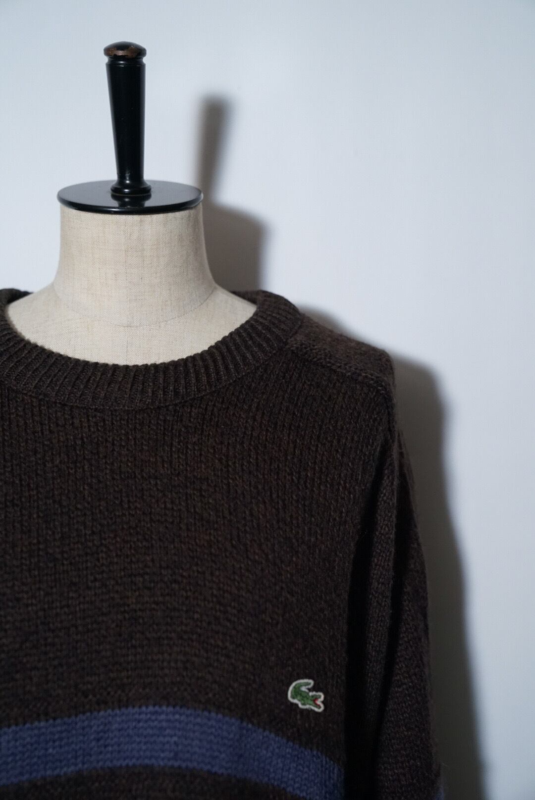 LACOSTEのワンポイントロゴがウールのニットについてる違和感が良いです。