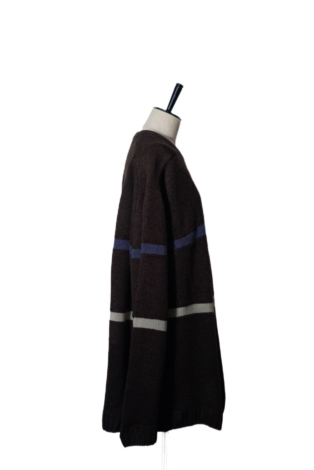 ブラウンカラーベースの重たい見た目のニットですがワンポイントロゴのおかげで野暮ったさが全然無いです。
