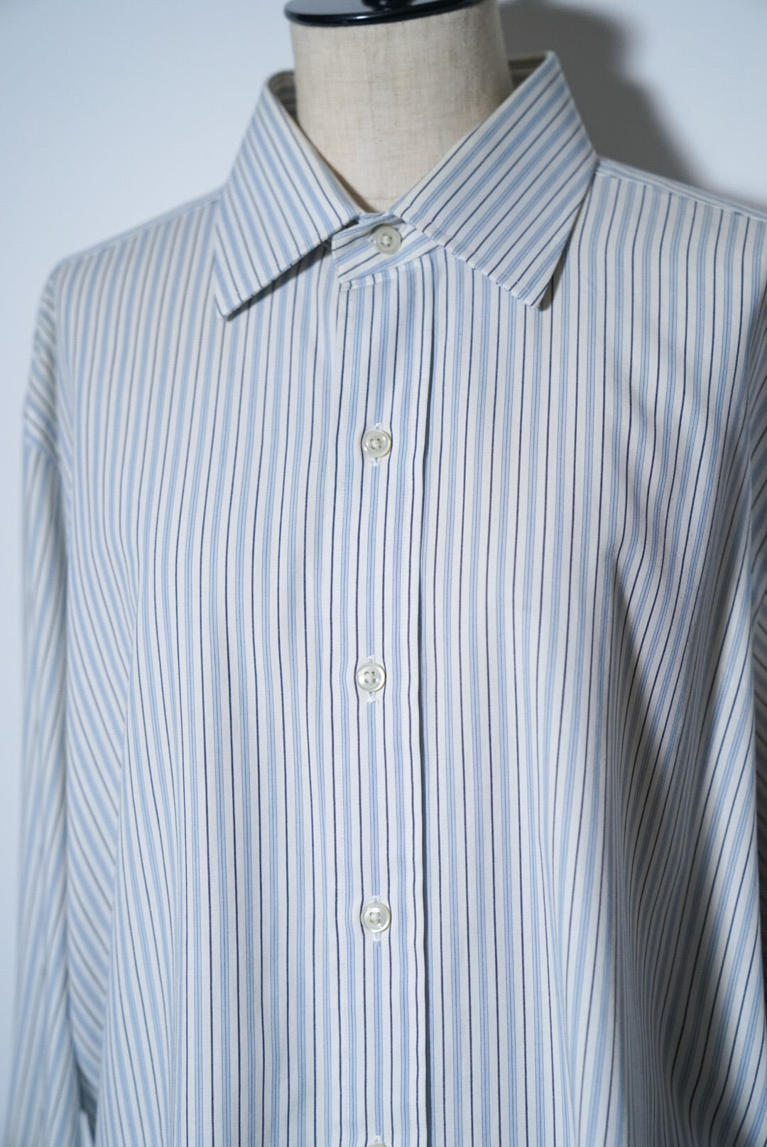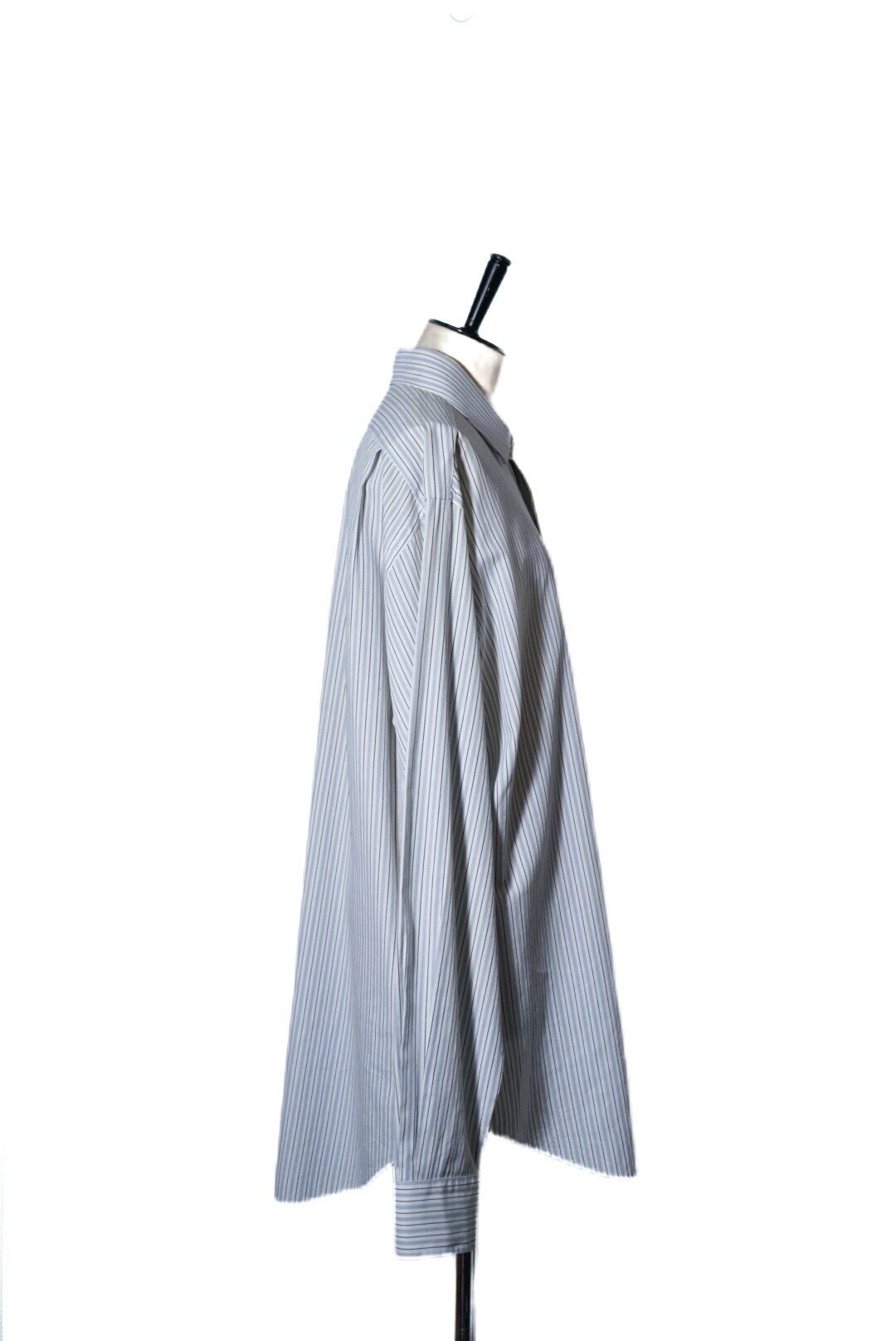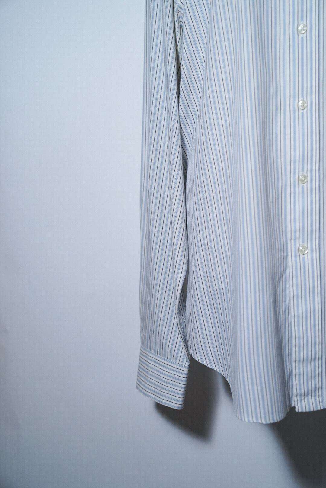 ホワイト、ブルーに薄めのブルーを掛け合わせた爽やかな印象のシャツです。