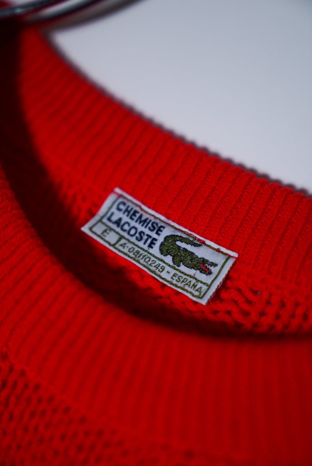ニット素材にラコステのワンポイントロゴがついてるギャップが良いです。