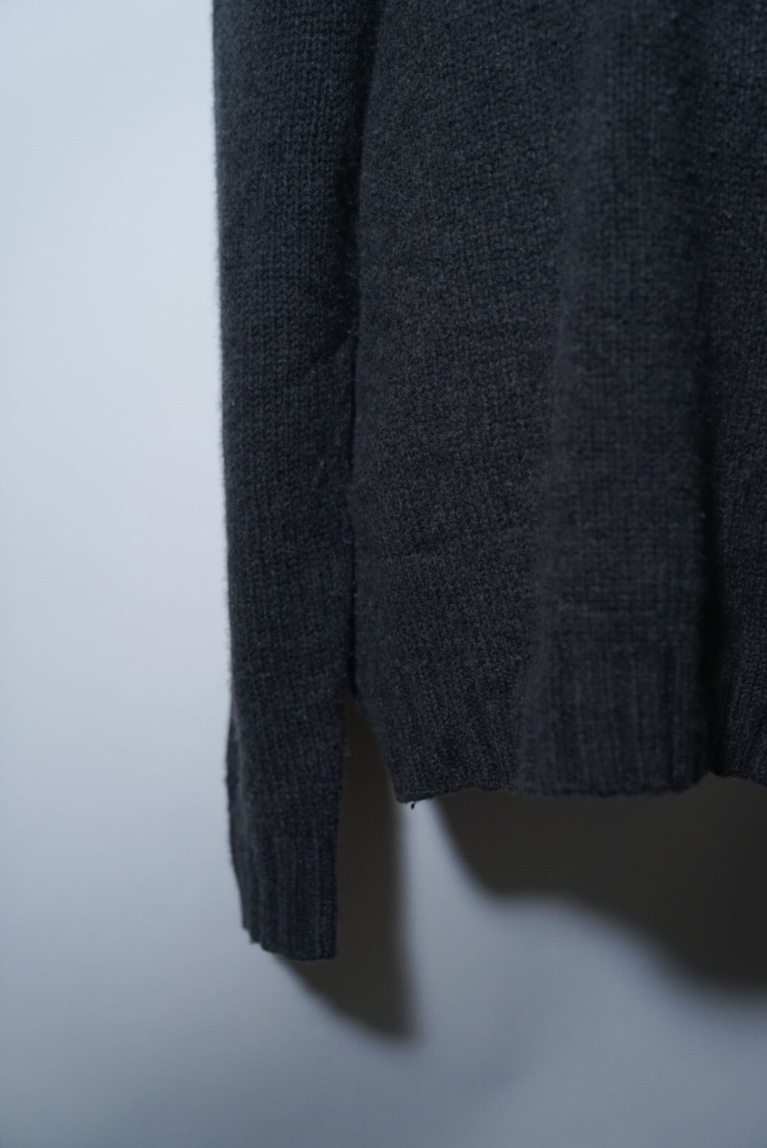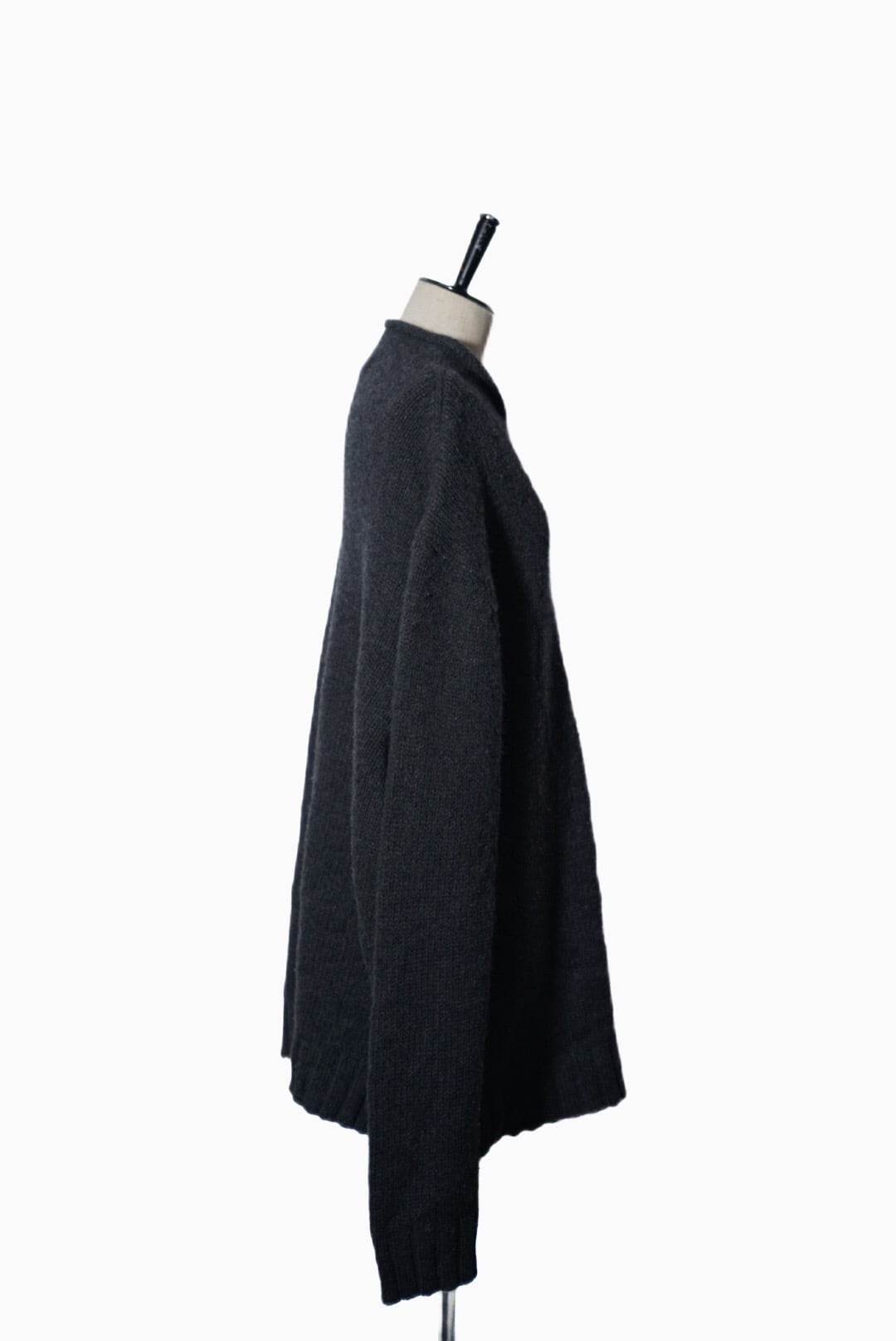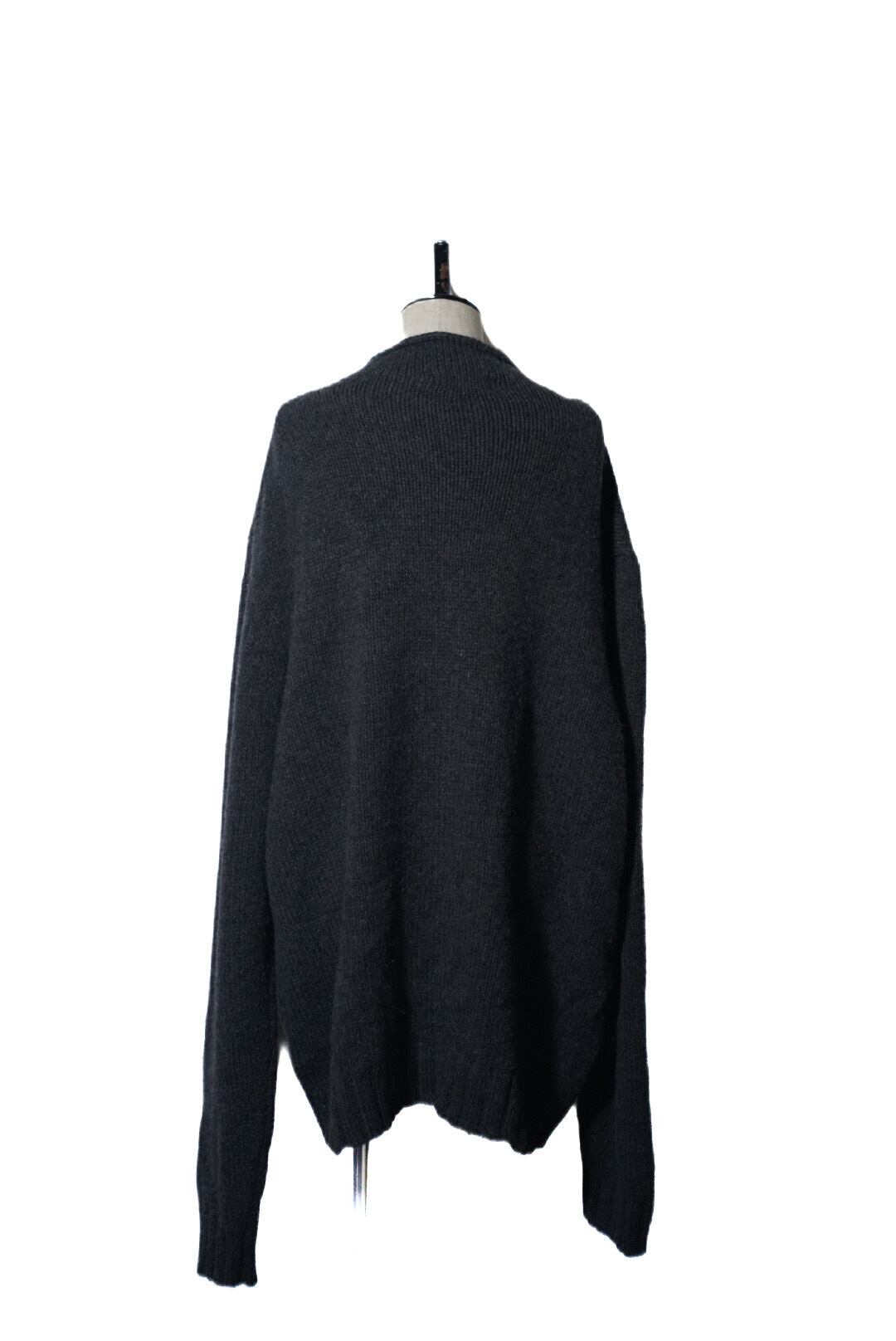 こちらのシリーズは特にシルエットが良く、コットンの重みで肩が滑らかに落ちて、身幅が広く、ネックの高さのバランスが良い、と理想的なニット。